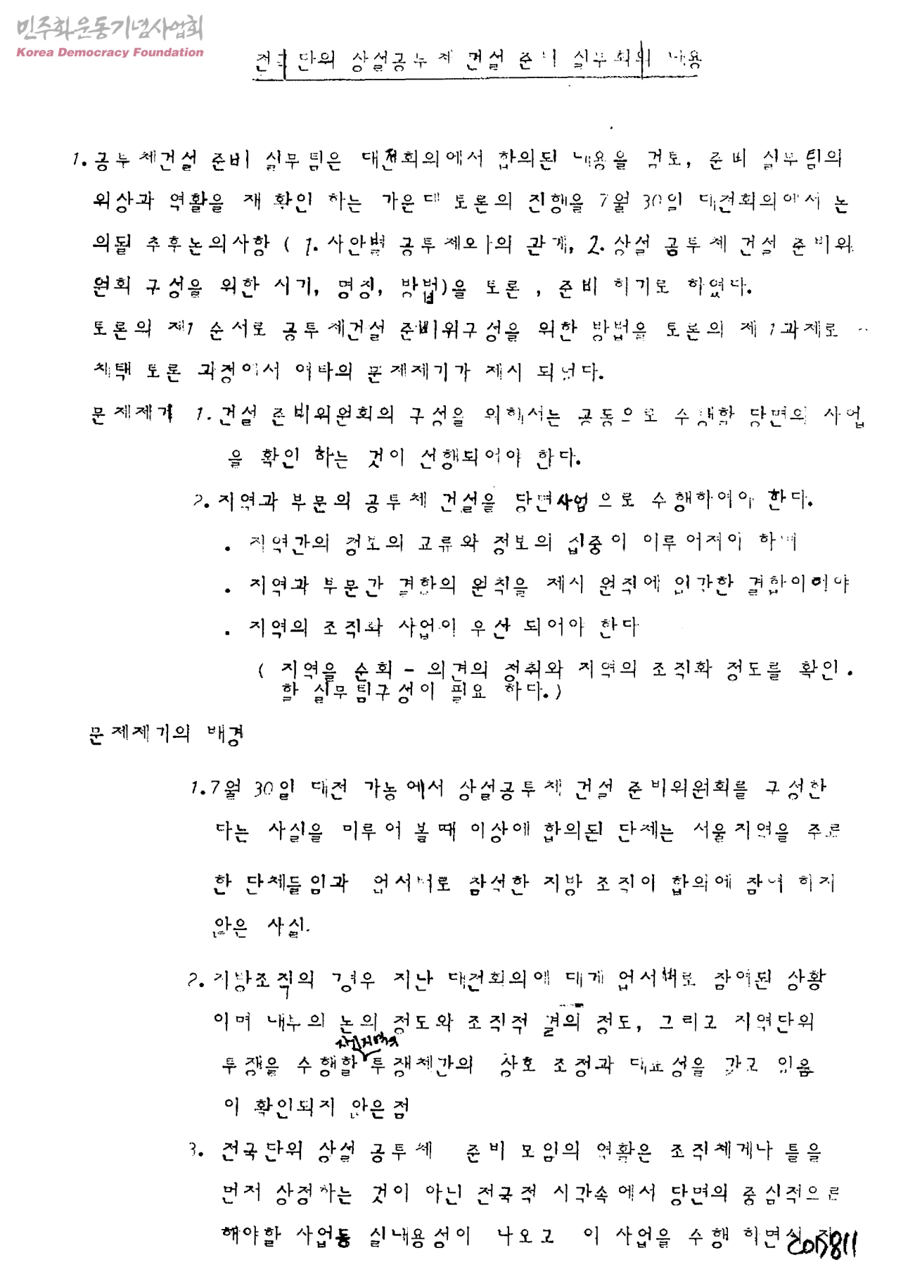 전국단위 상설공동체 건설 준비 실무회의 내용