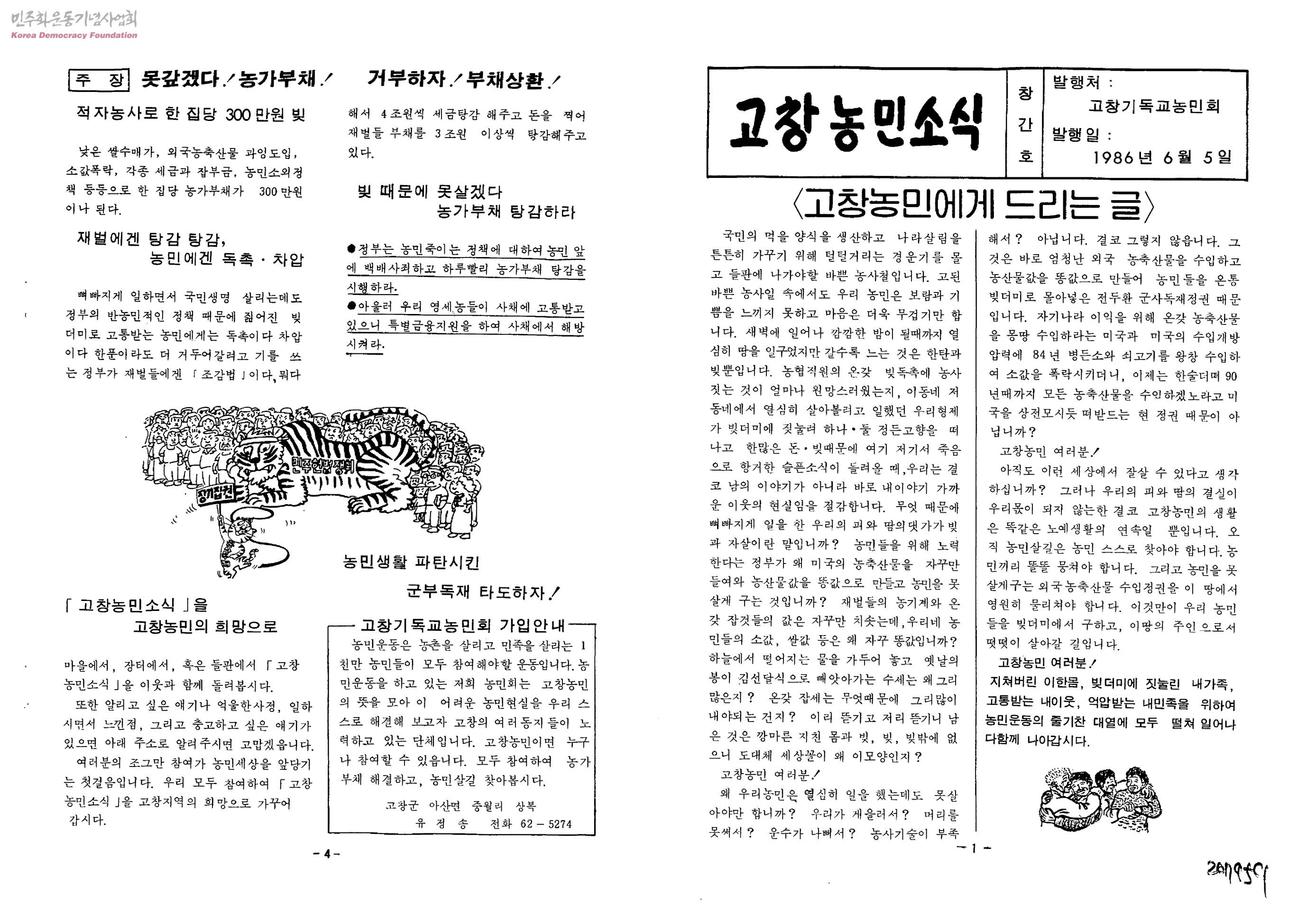 - 고창농민에게 드리는 글 농민수탈 자행하는 삼양영업사는 소작토지를 즉각 무상양도하라!