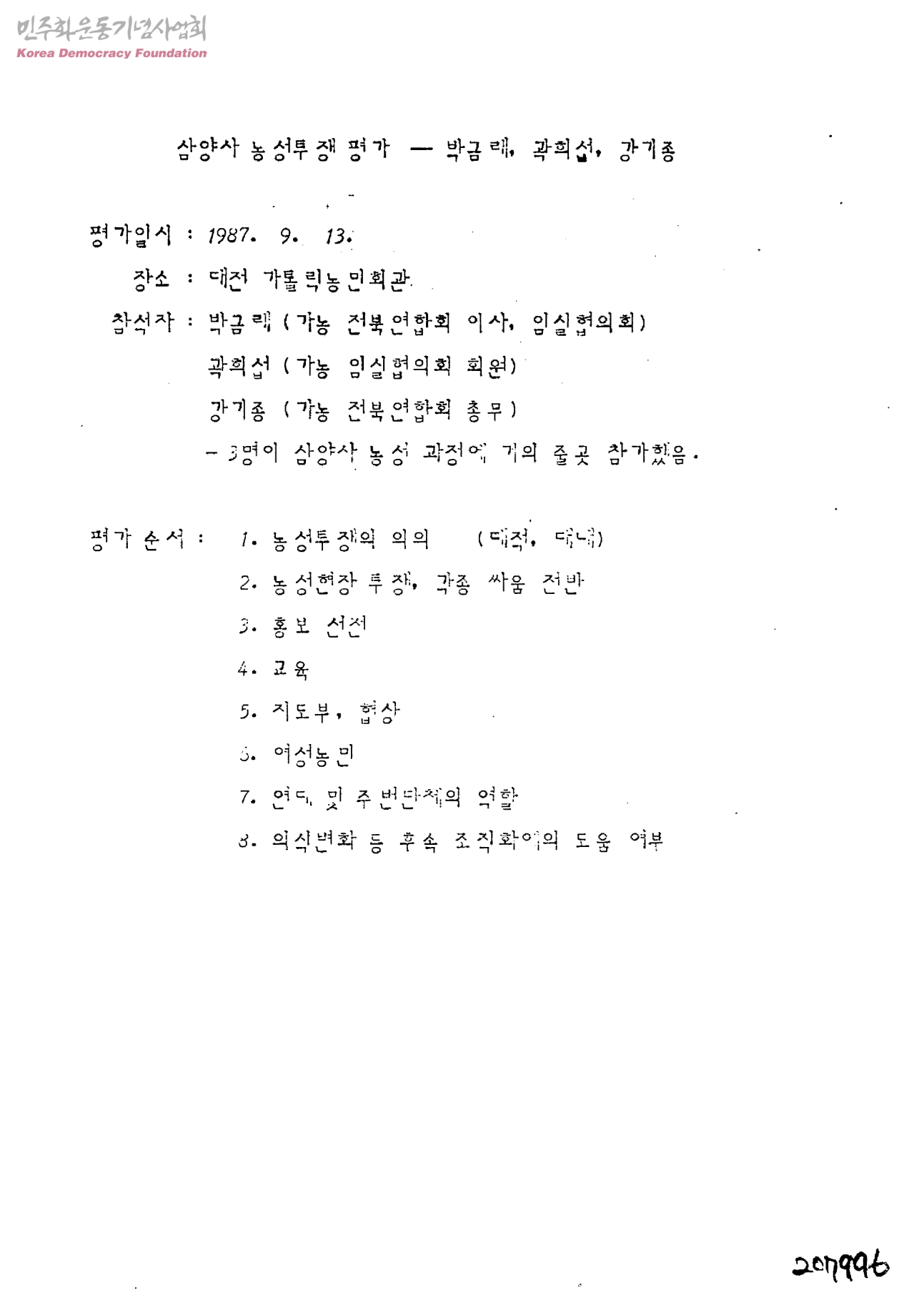 삼양사 농성투쟁 평가-박금래, 곽희섭, 강기종