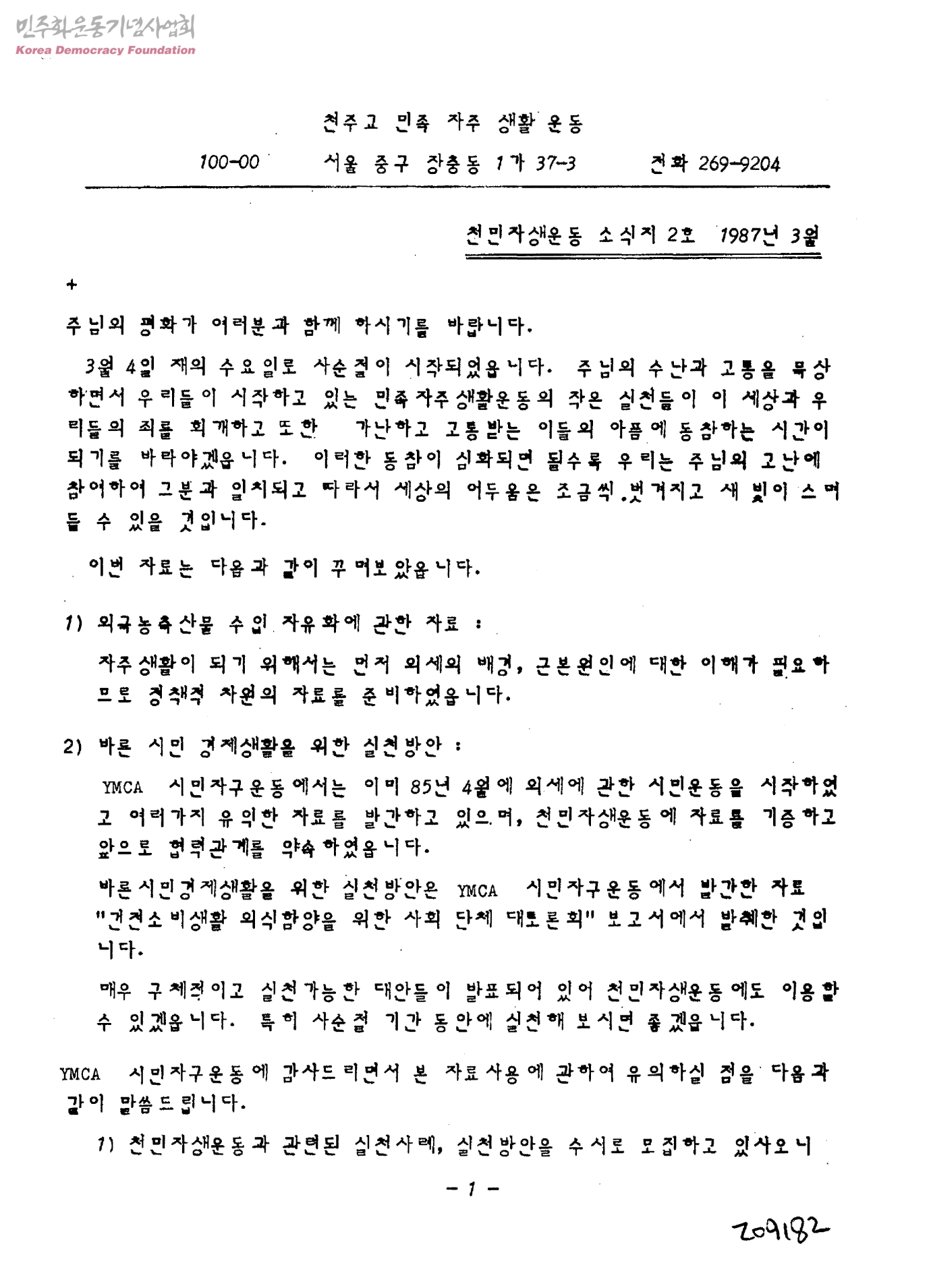 천민자생운동 소식지 2호