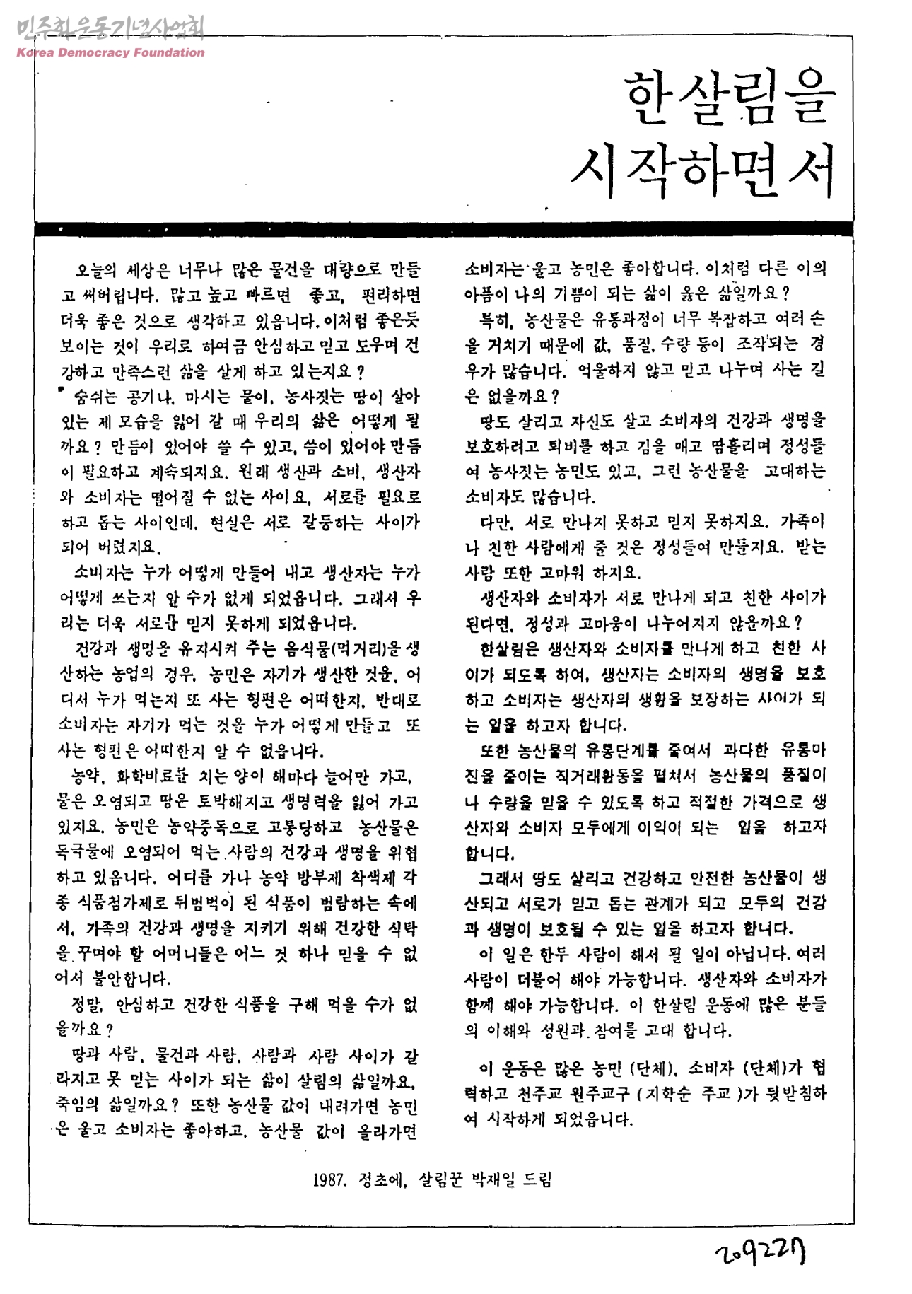 - 유기농법으로 농사짓고 있는 최재영 씨-<신동아> 86. 12월호 내용