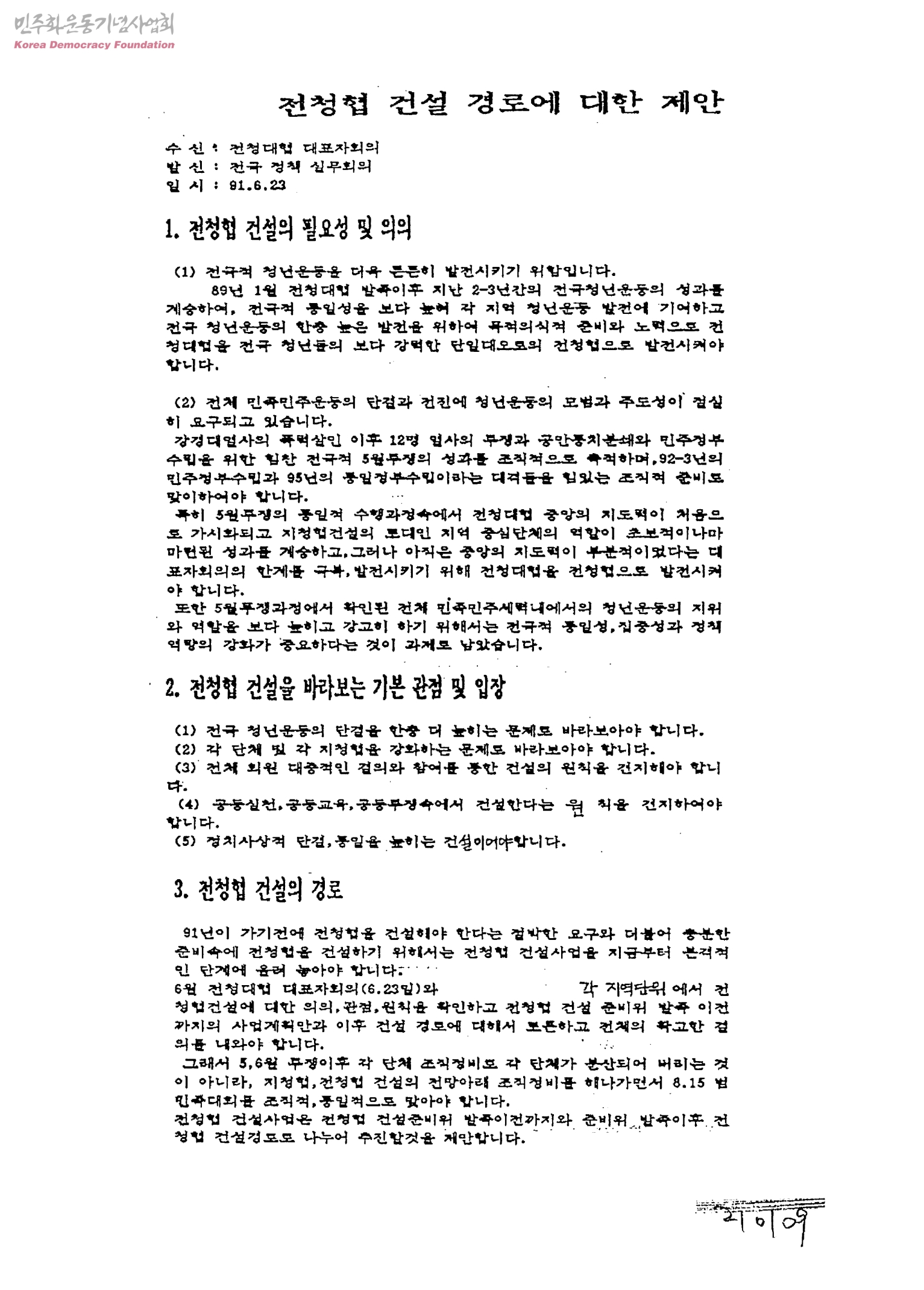 전청협 건설 경로에 대한 제안[수신: 전청대협 대표자회의, 발신:전국정책실무회의]