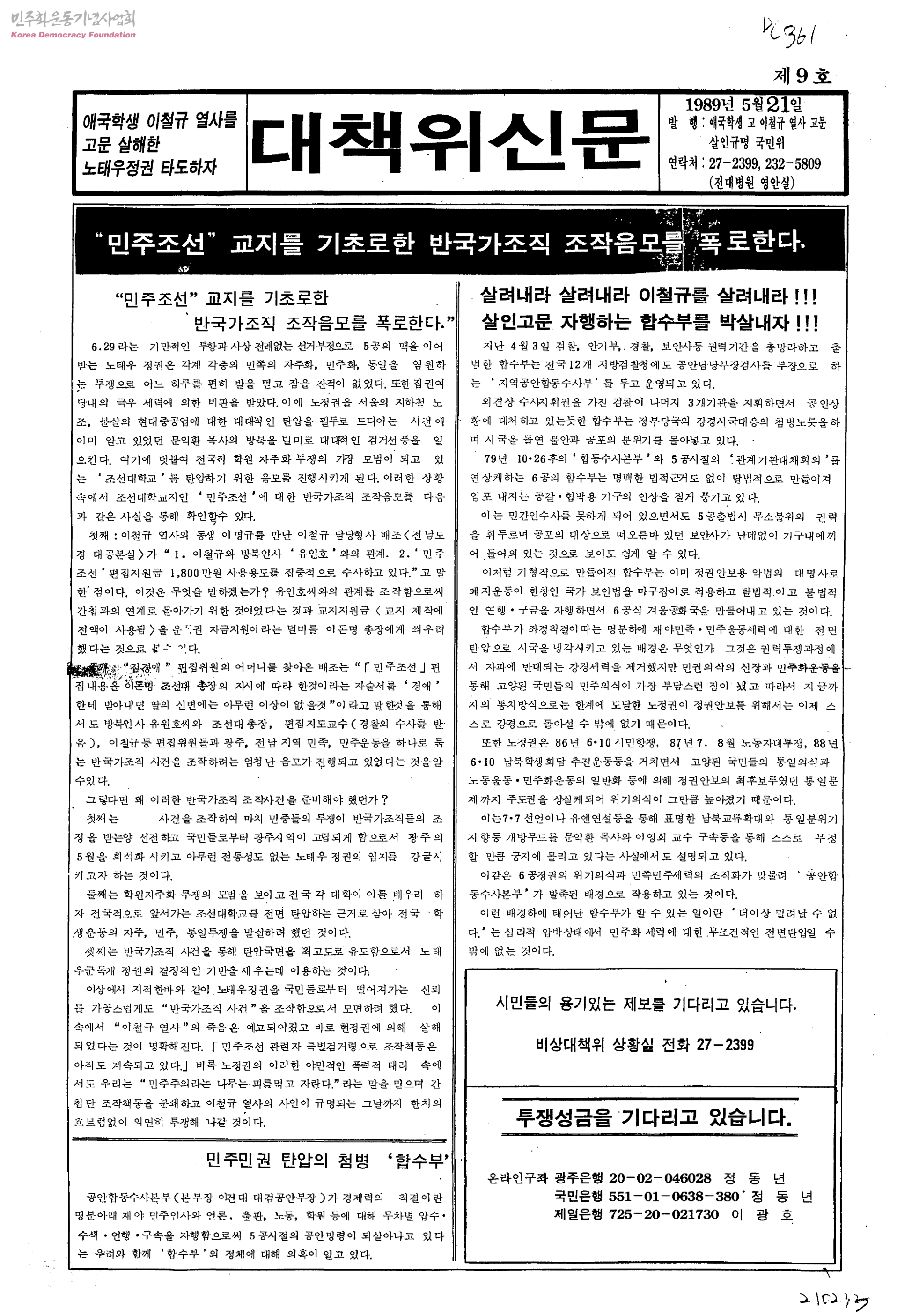 대책위신문("민주조선"교지를 기초로한 반국가조직 조작음모를 폭로한다)