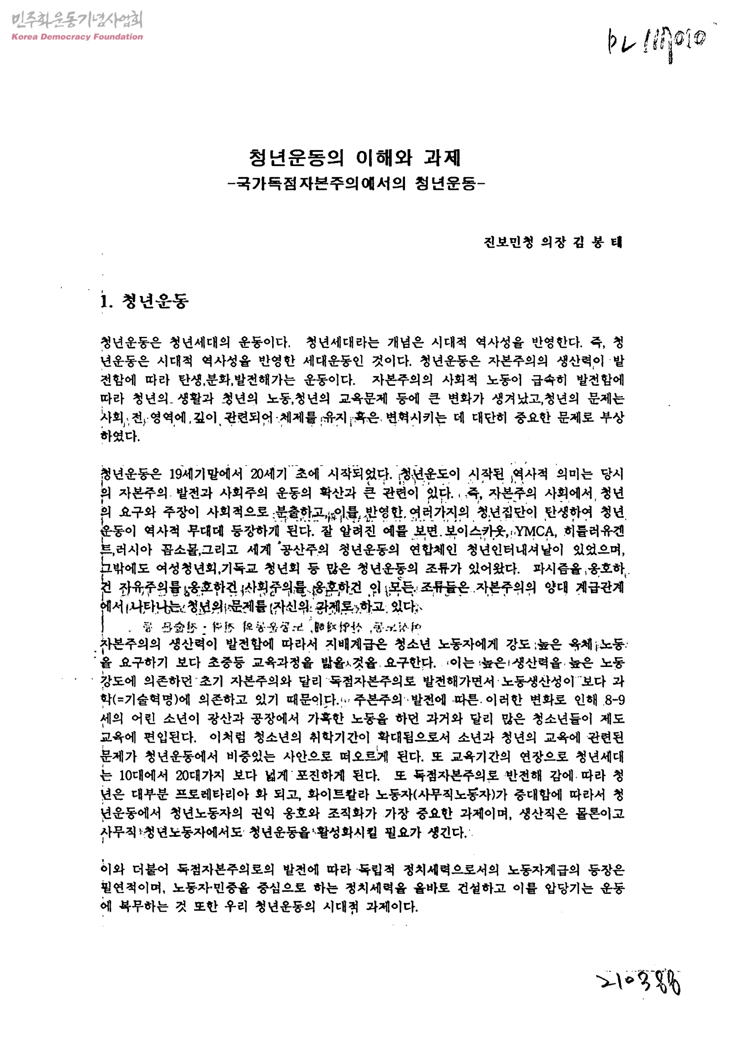 청년운동의 이해와 과제-국가독점자본주의에서의 청년운동