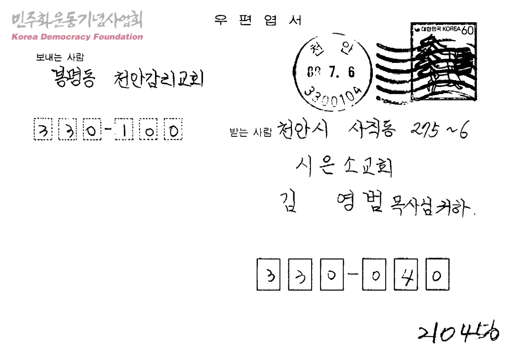 [부흥성회 초대][수신:시은소 감리교회 김영범, 발신:봉영동 천안감리교회]