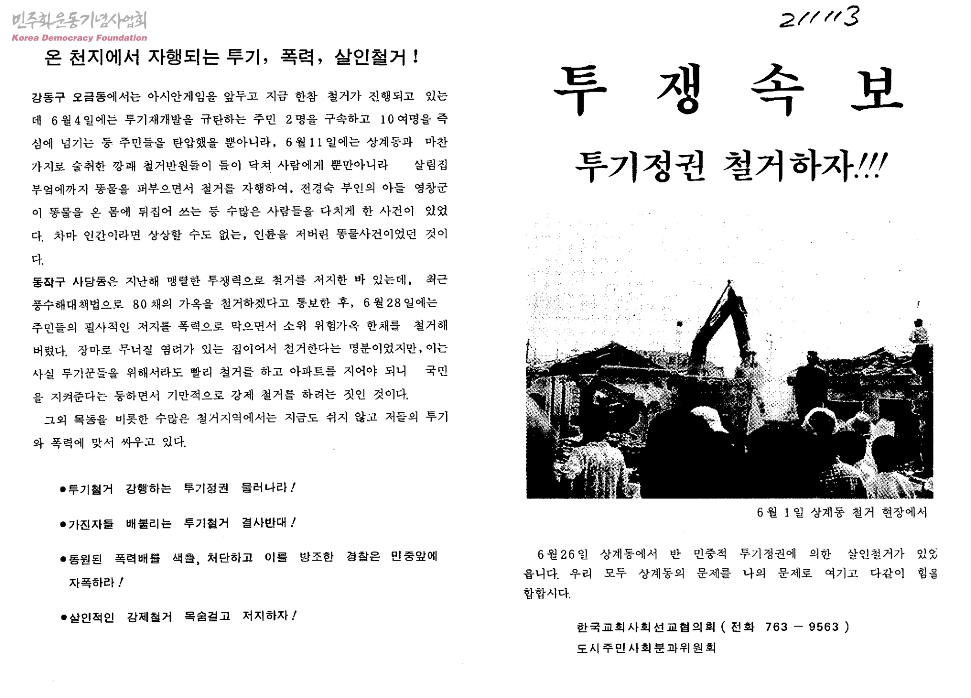 투쟁속보-투기정권 철거하자!!![상계동 강제철거 관련]