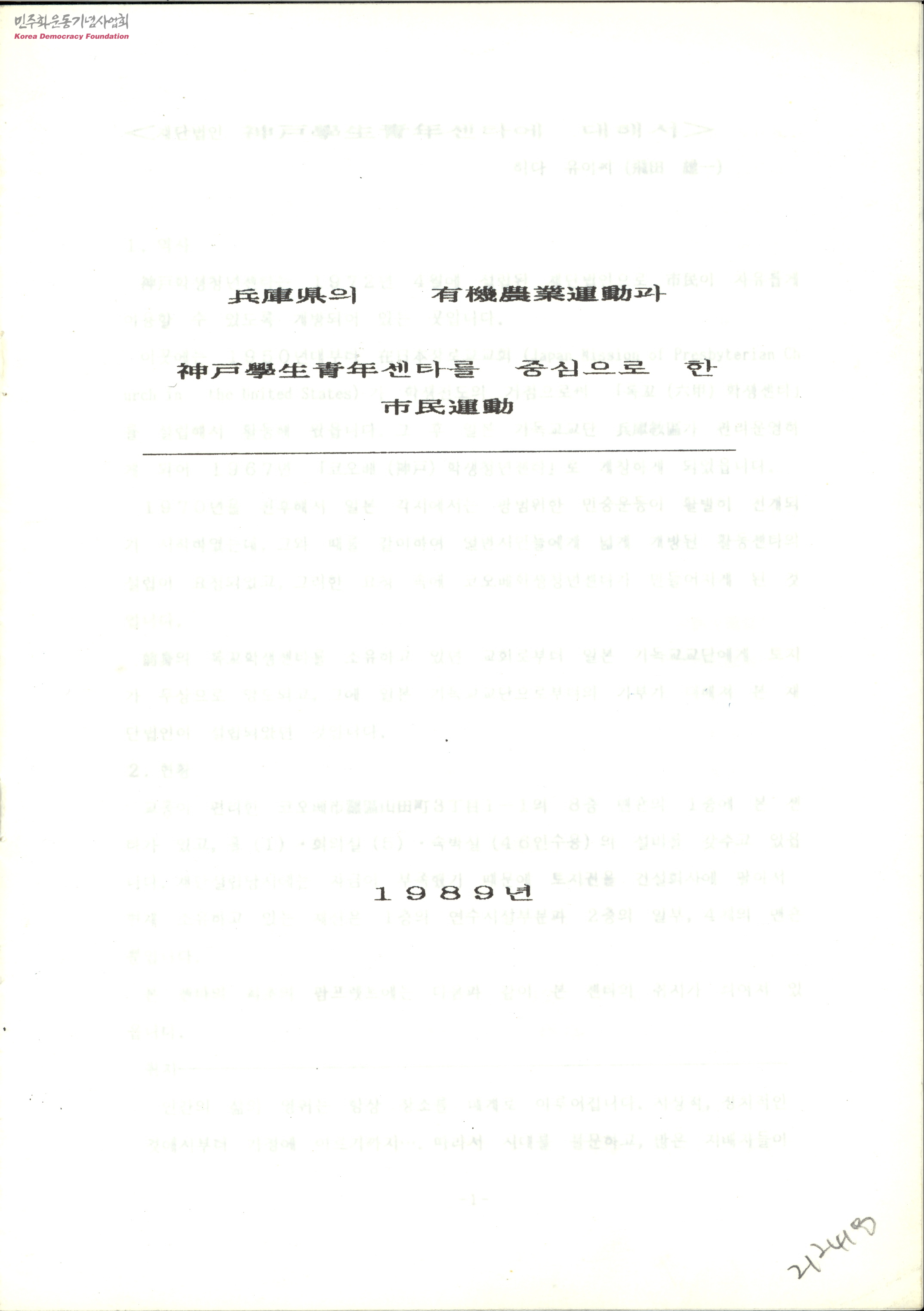 兵庫縣의 有機農業運動과 神戶學生靑年센터를 중심으로 한 市民運動