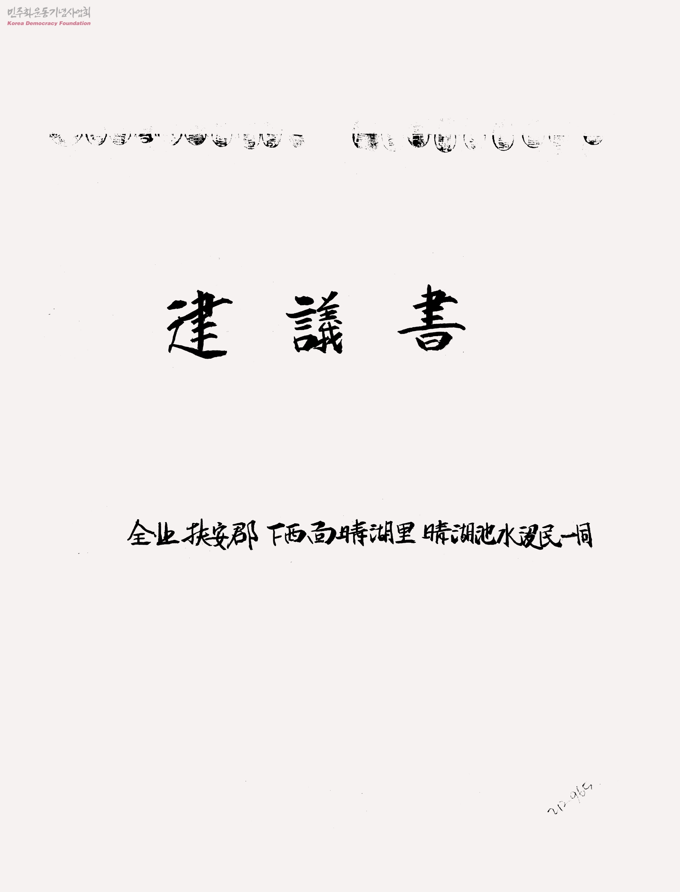 建議書[계하간척지 사업으로 삶의 터전을 잃어버린 주민들의 건의]