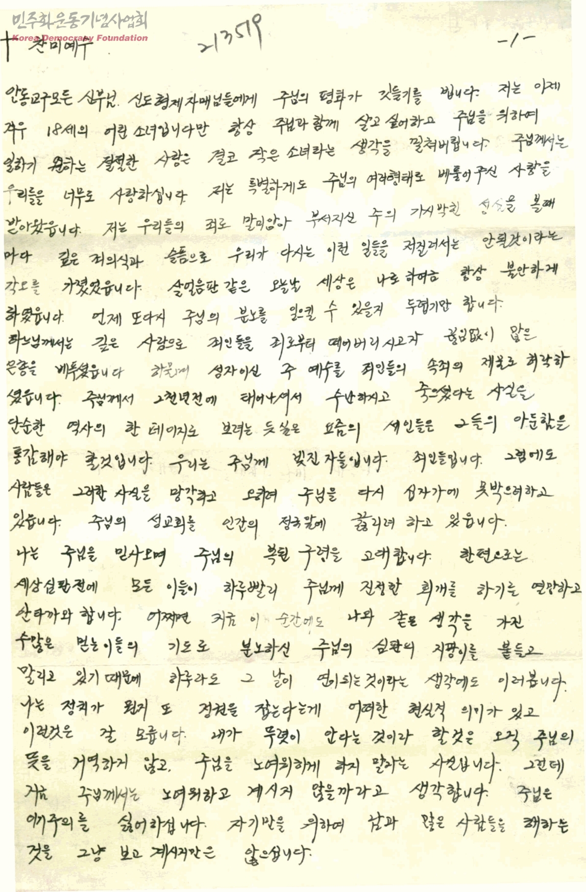 [김마리아가 목성동 천주교회 본당신부님에게 보내는 안동사태관련 격려편지]