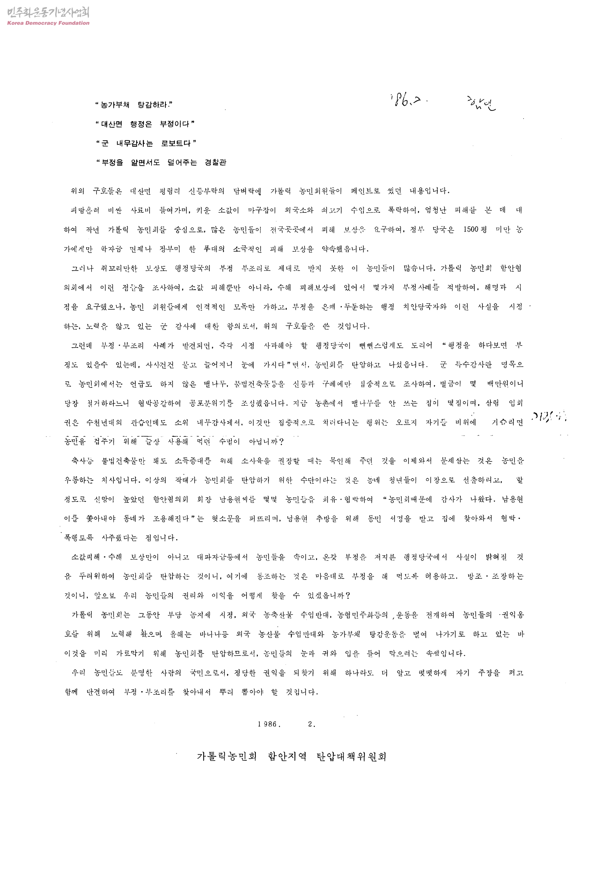 - 가톨릭농민회함안지역탄압대책위원회