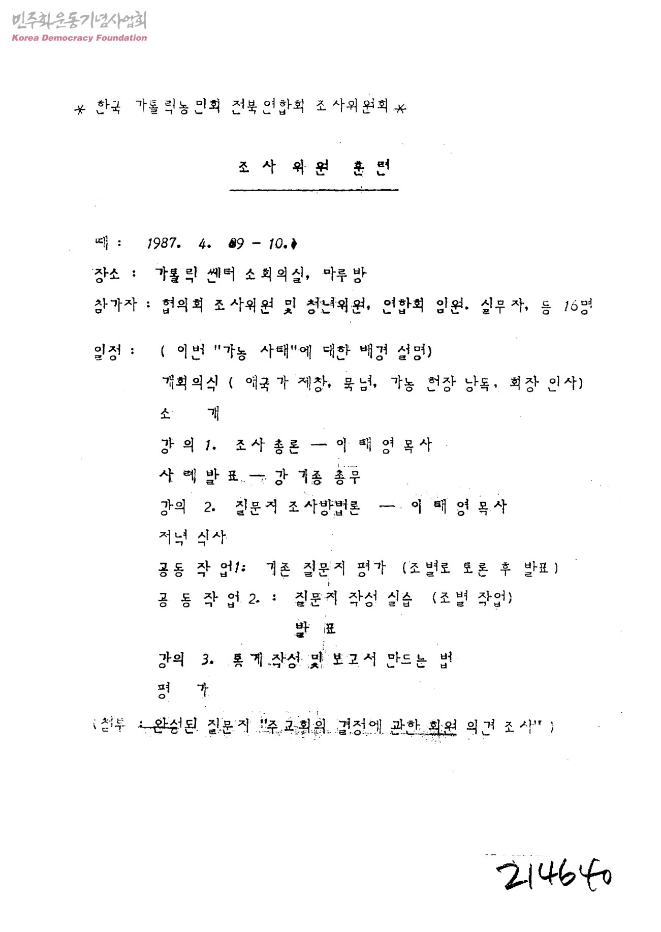 한국가톨릭농민회전북연합회 조사위원회 조사위원 훈련