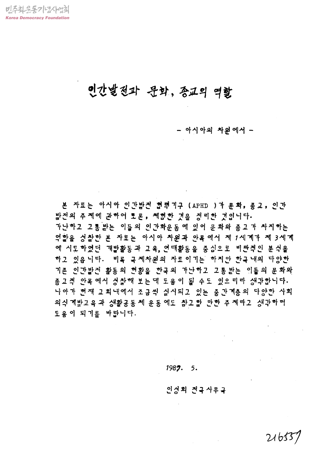 인간 발전과 문화,종교의 역할-아시아의 차원에서