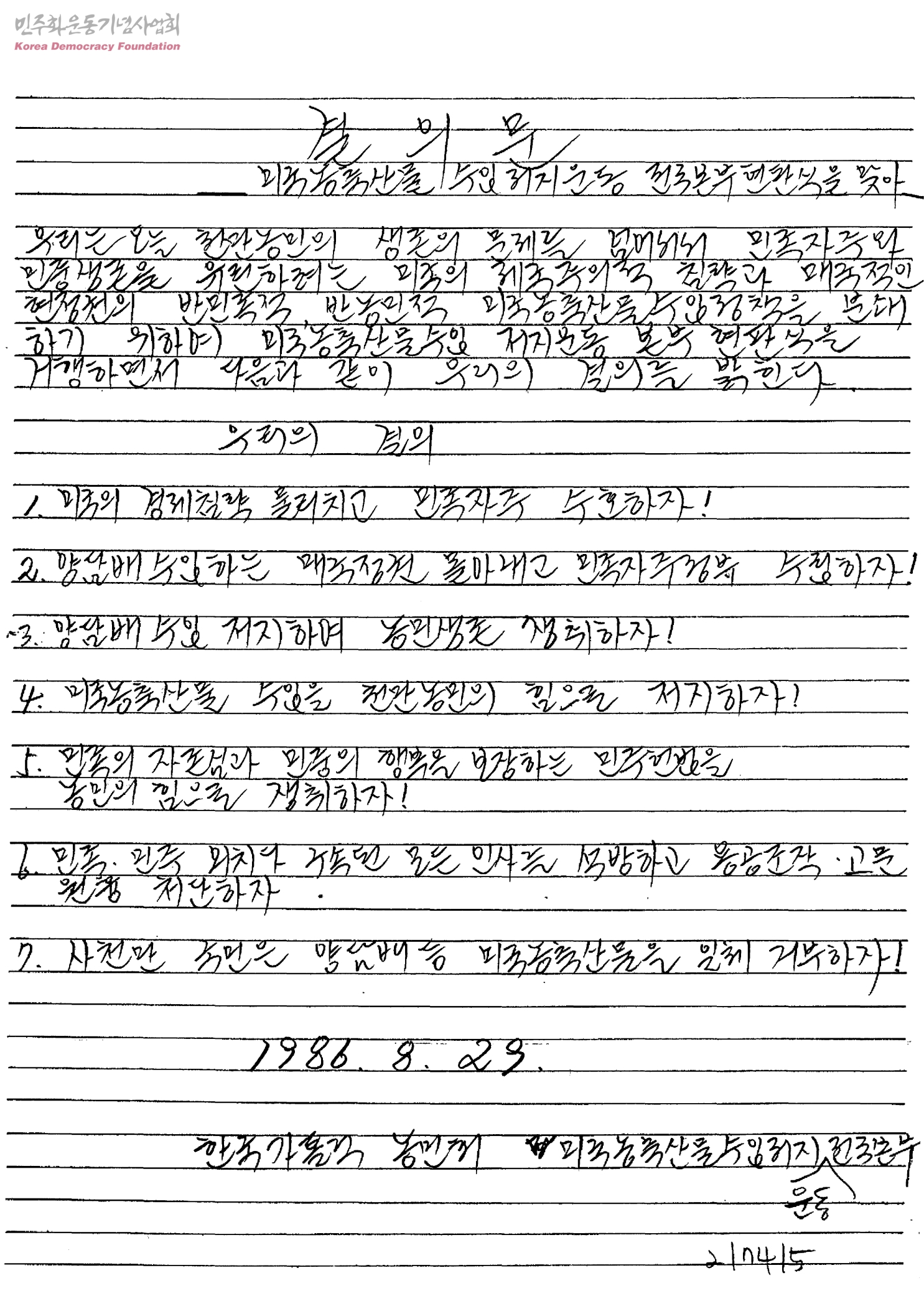 - 생산자 및 기증자가 ‘박용수’인 사진의 사용은 구매신청을 클릭하여 직접 사진 구매 신청을 하실 수 있습니다. 생산자 및 기증자가 ‘경향신문사’인 사진의 사용은 경향신문사 담당자(02-3701-1635)를 통해 구매하실 수 있습니다. 그 외의 생산자 및 기증자는 민주화운동기념사업회 사료관 담당자( hyunchaek@kdemo.or.kr / 02-6440-8961 )에 문의바랍니다.