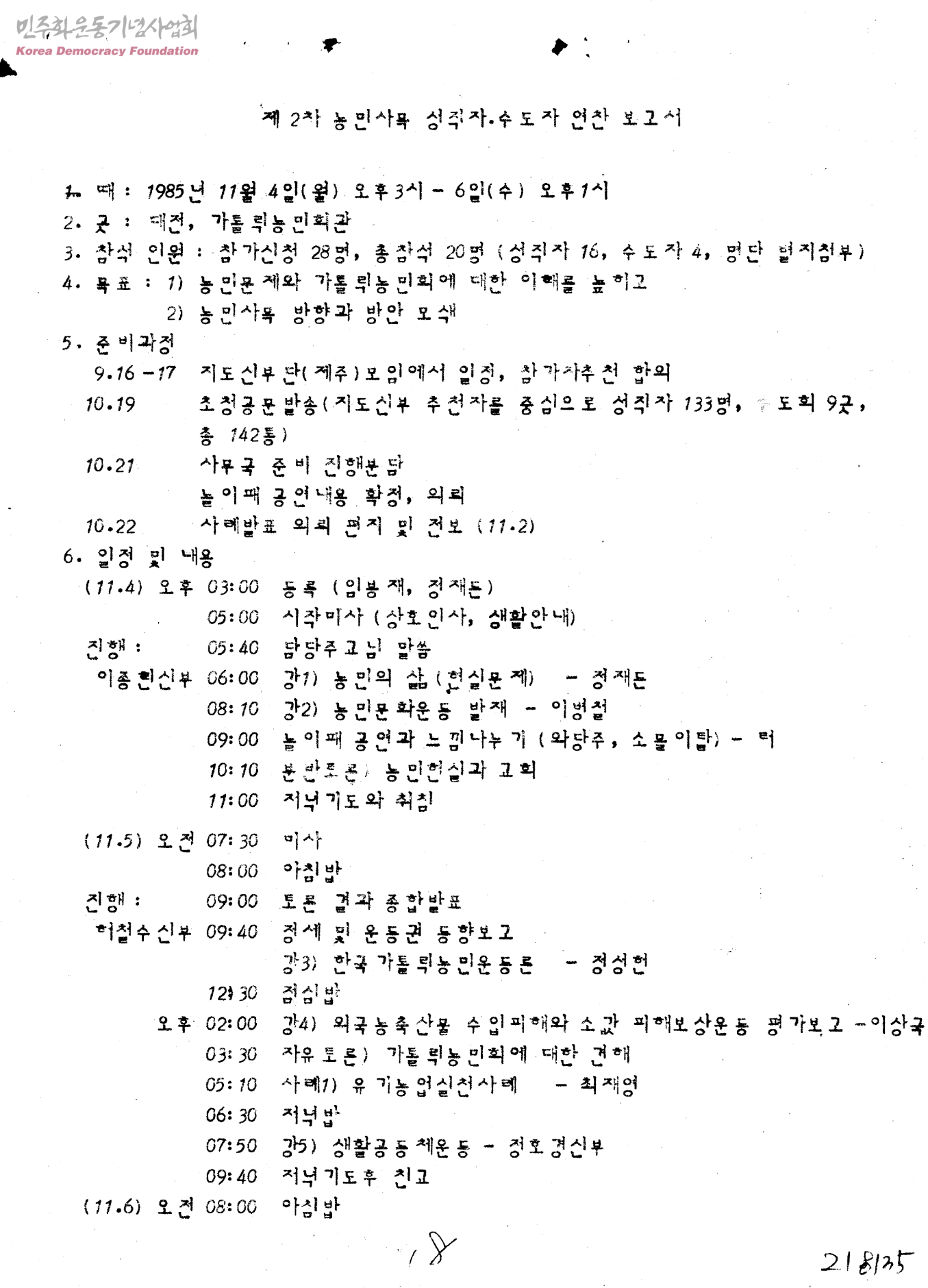 - 첨부 1.참석자 명단 2.초청자 명단(자필) 3.일정표 4.농민회 예산의 구조와 특징 보고자-정재돈