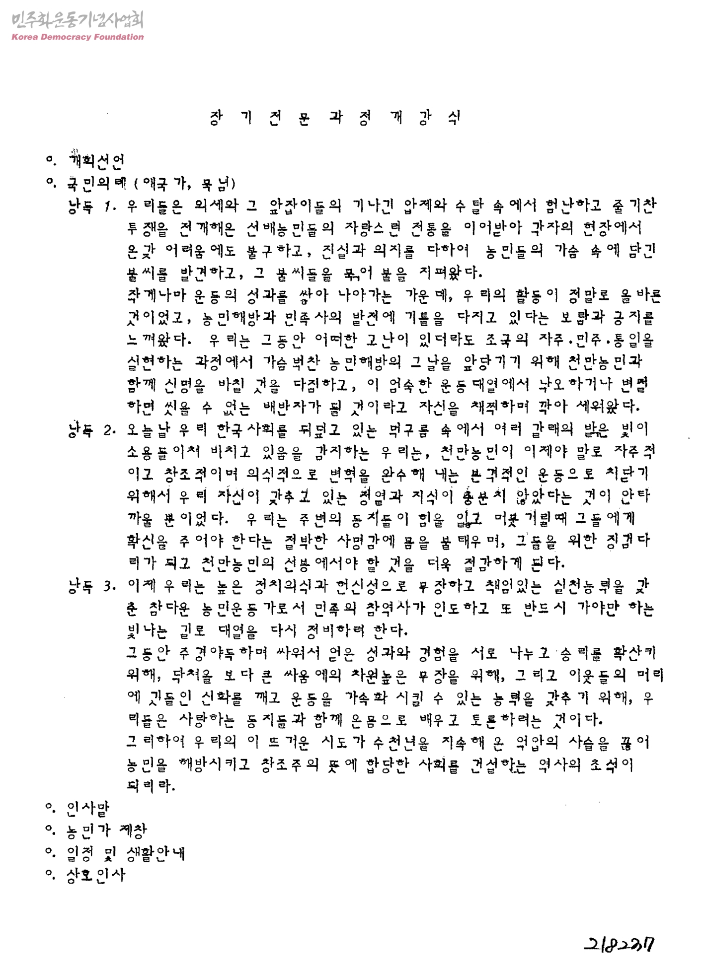 - 1.식순 2.제3기 장기전문과정 1차 소집훈련 3.장기전문과정 안내