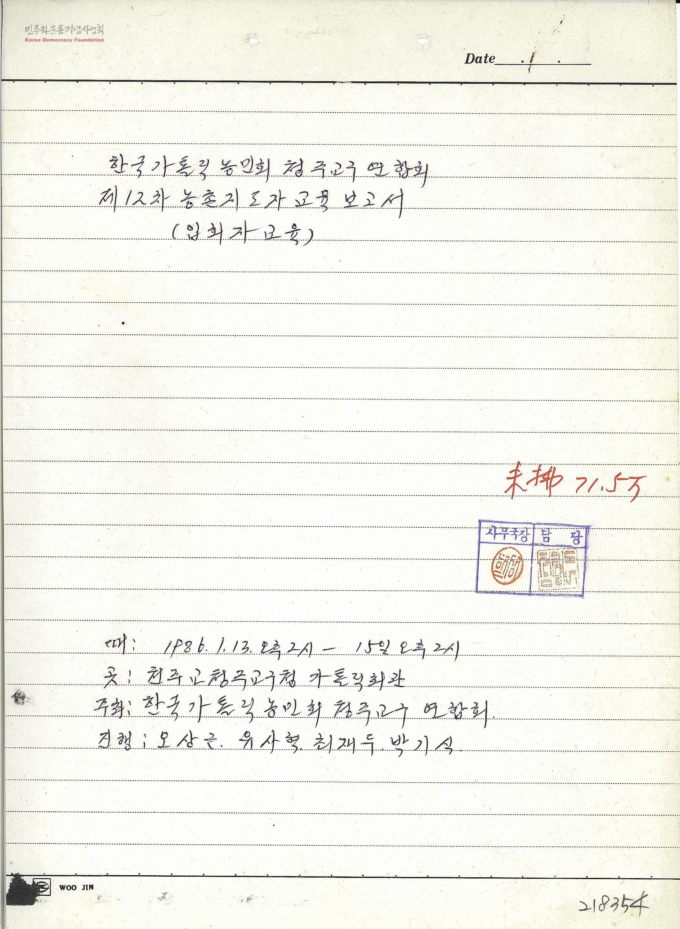 한국가톨릭농민회 청주교구연합회 제12차 농촌지도자 교육보고서(입회자교육)