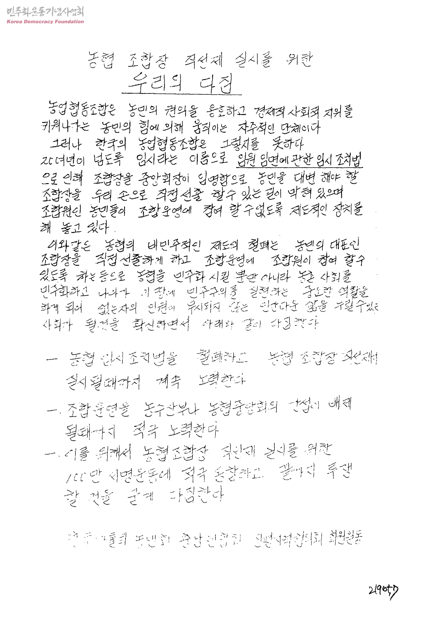 농협조합장 직선제 실시를 위한 우리의 다짐