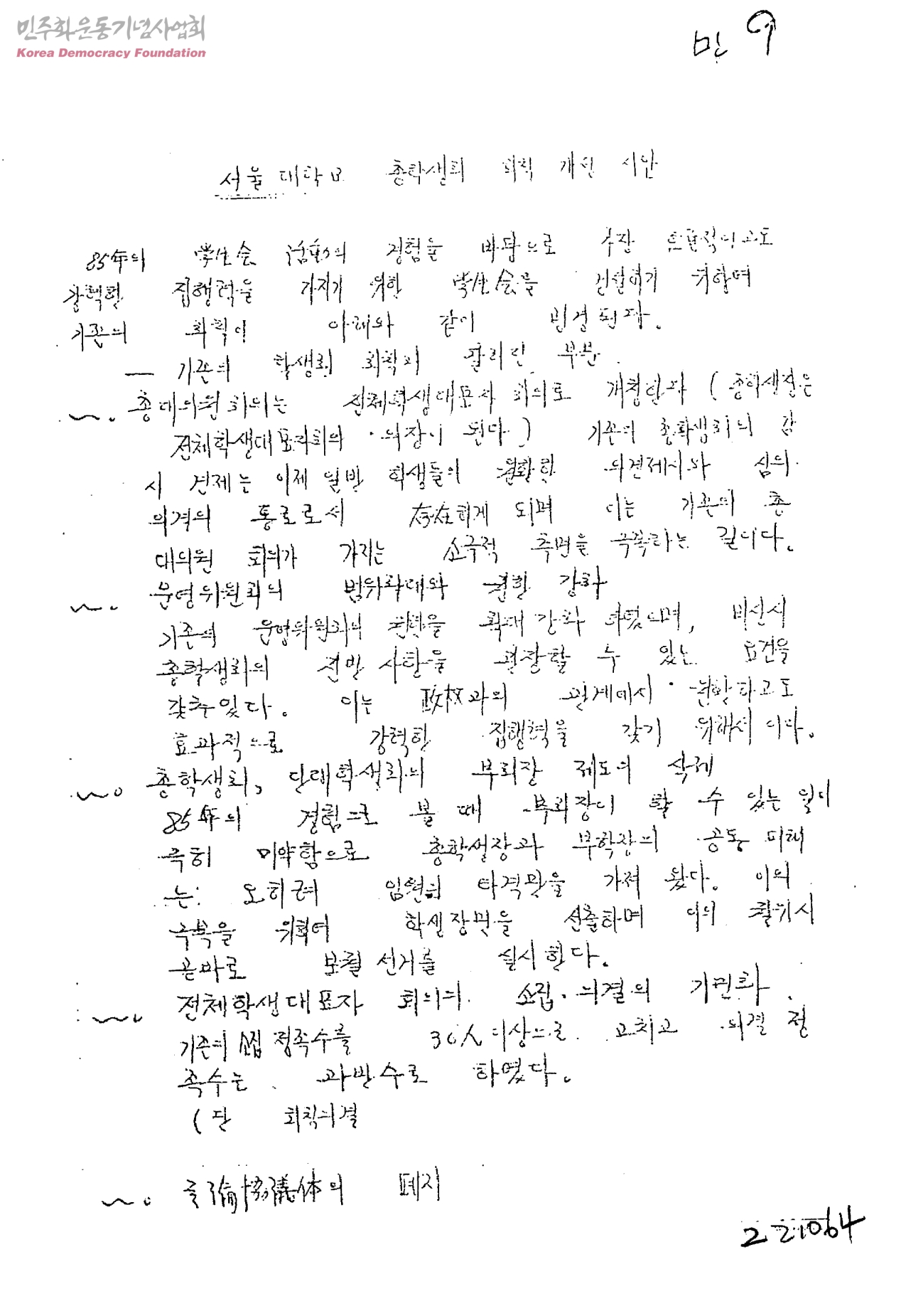 서울대학교 총학생회 회칙 개정 시안