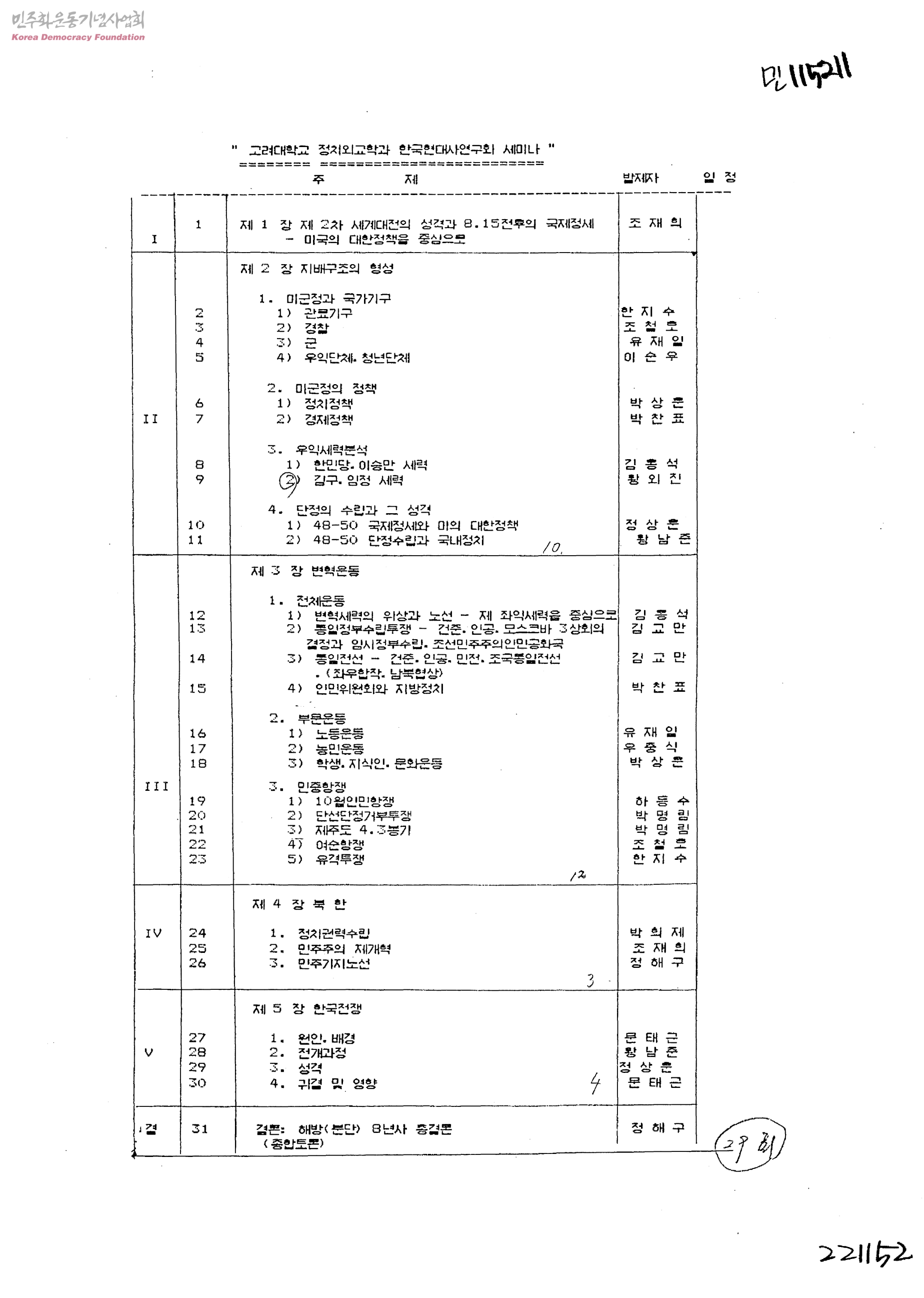 고려대학교 정치외교학과 한국현대사연구회 세미나
