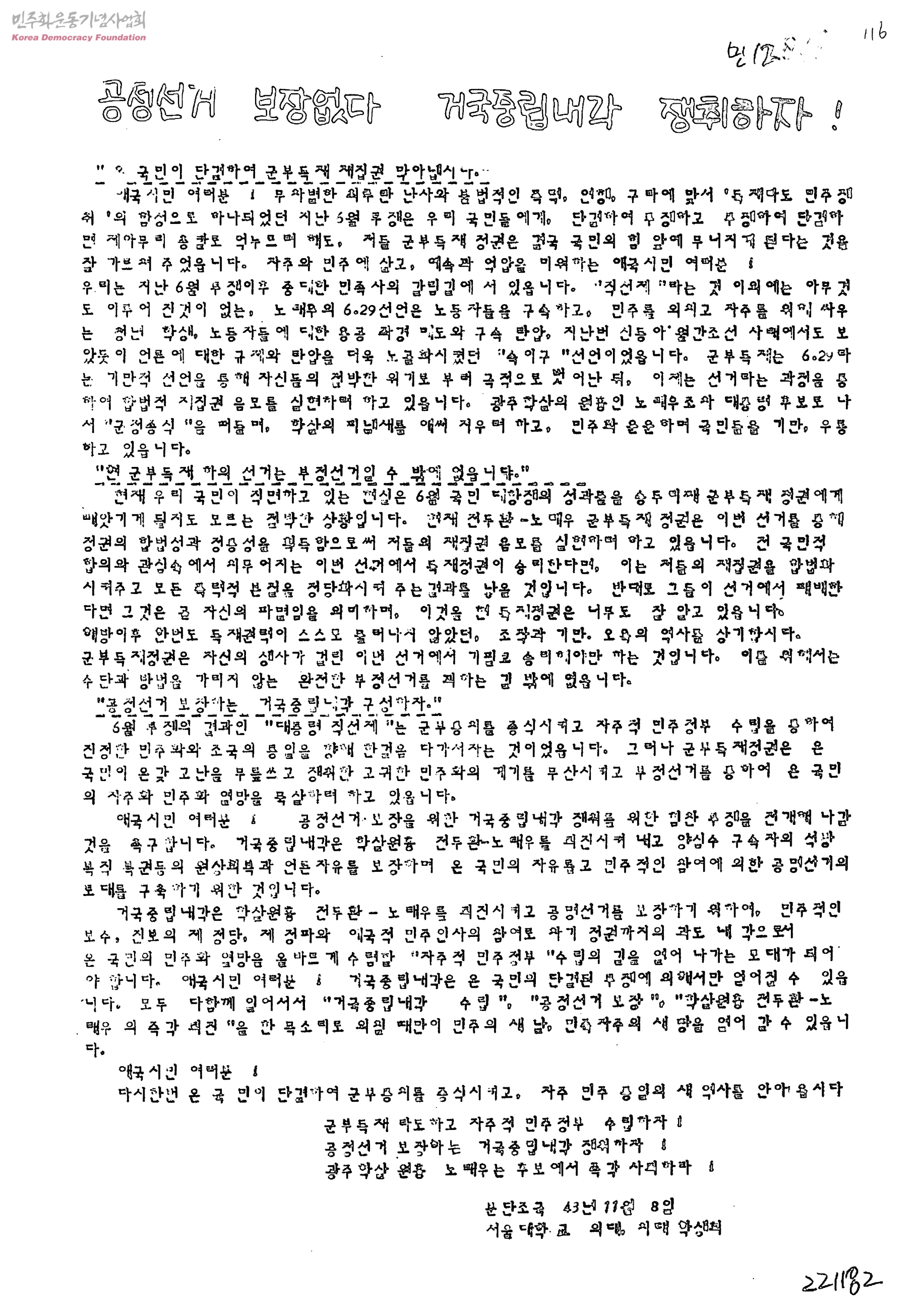 공정선거 보장없다. 거국중립내각 쟁취하자!