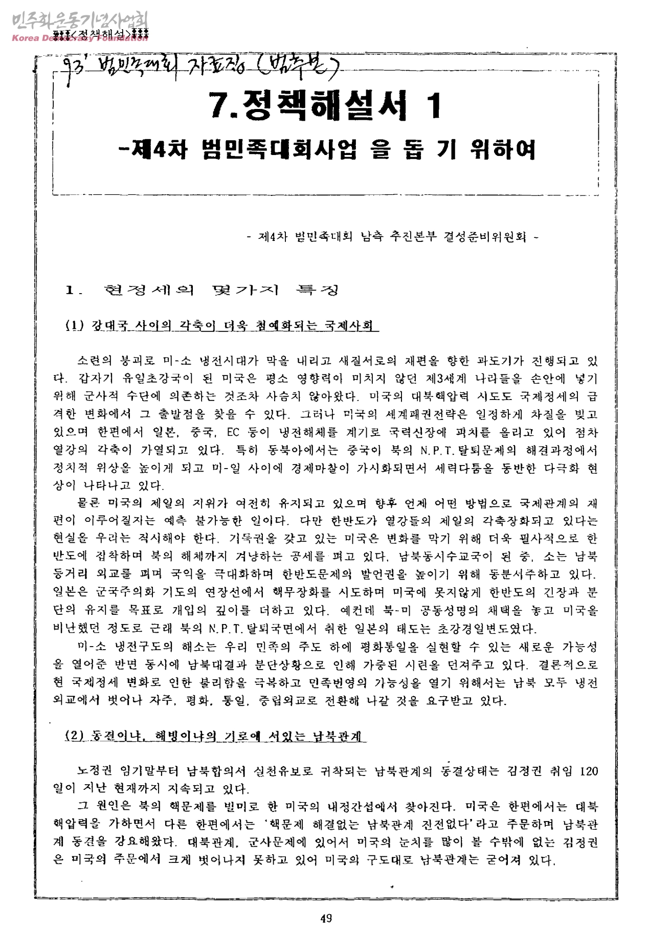 정책해설서 1-제4차 범민족대회사업을 돕기 위하여