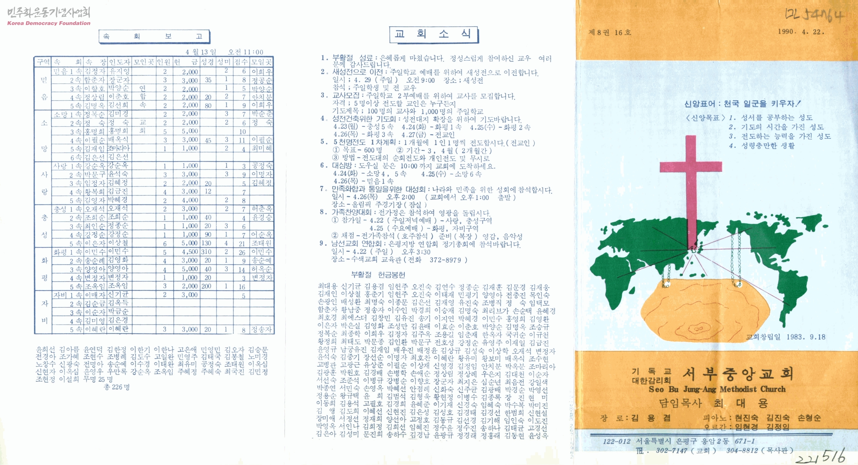 기독교대한감리회 서부중앙교회 주보 제8권 16호
