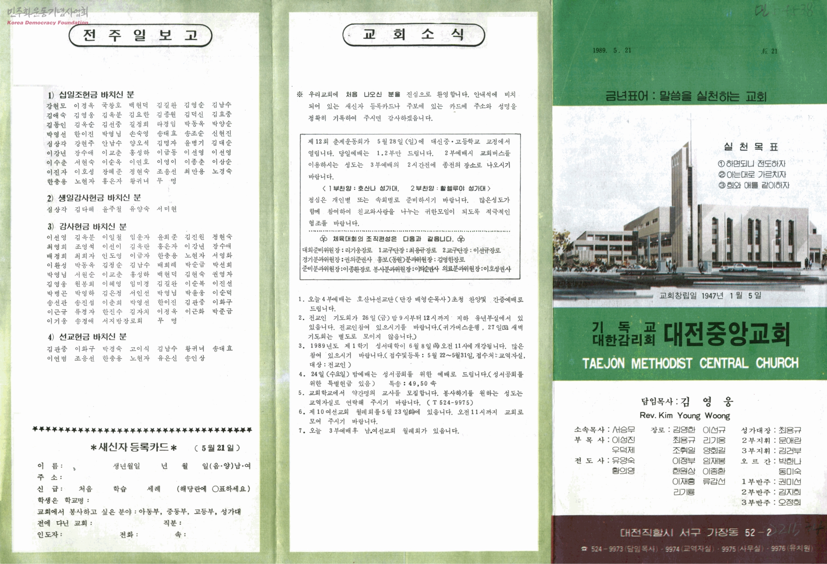 기독교대한감리회 대전중앙교회 주보 21호