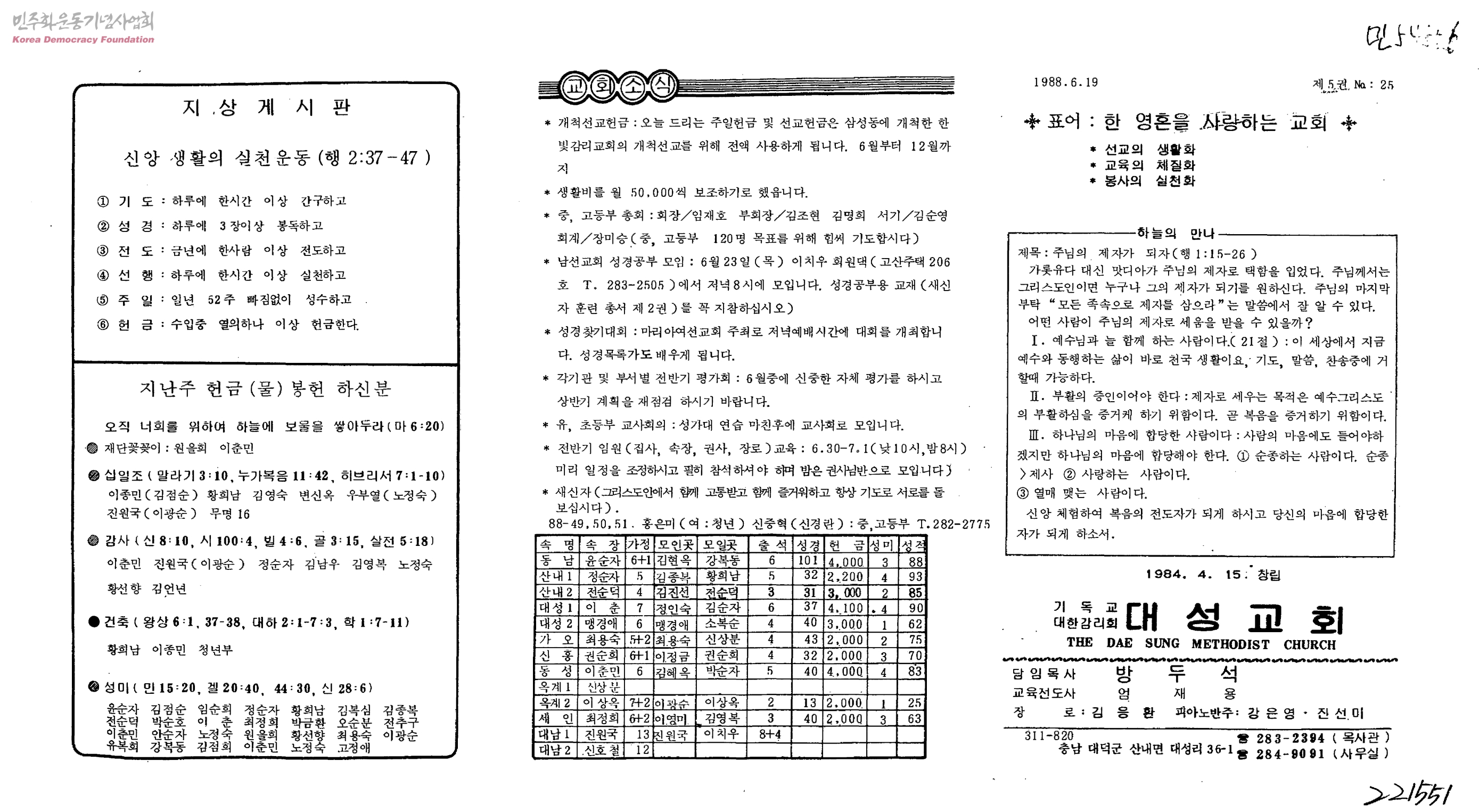기독교대한감리회 대성교회 주보 제5권 25호