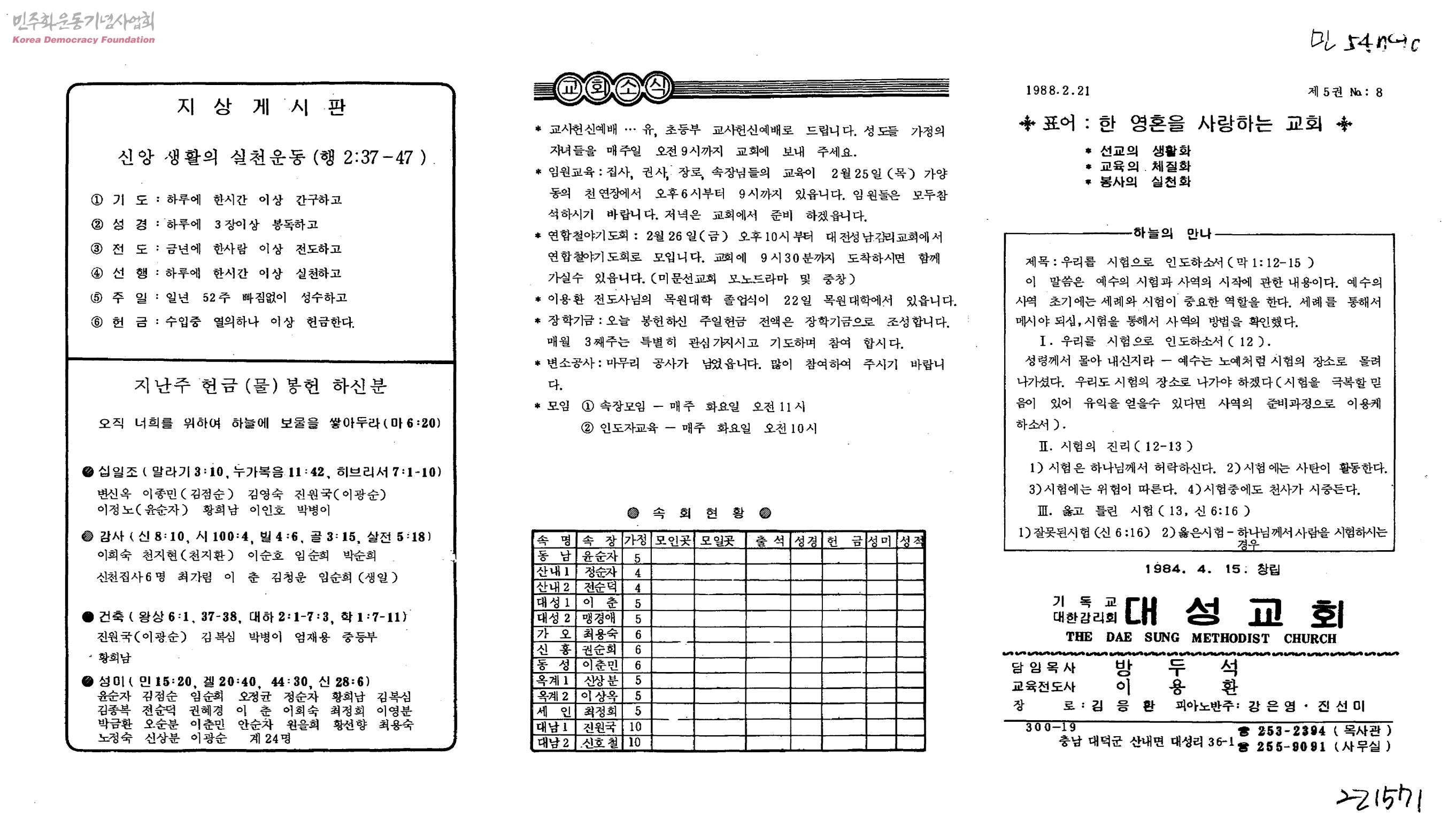 기독교대한감리회 대성교회 주보 제5권 8호