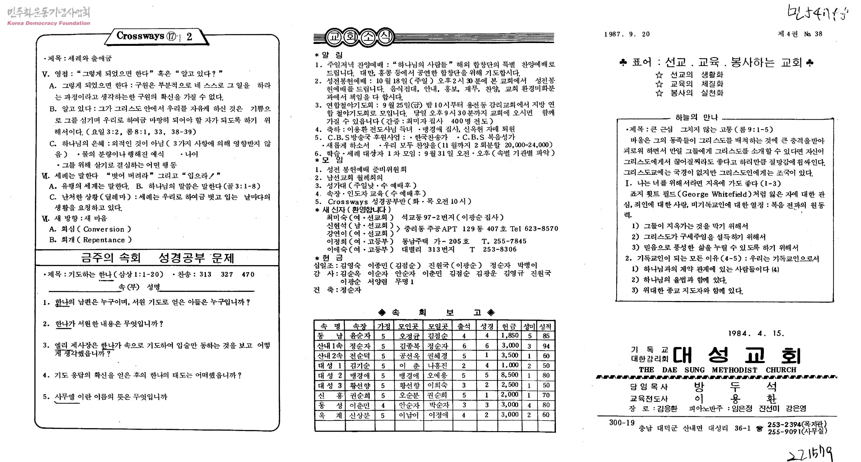 기독교대한감리회 대성교회 주보 제4권 38호