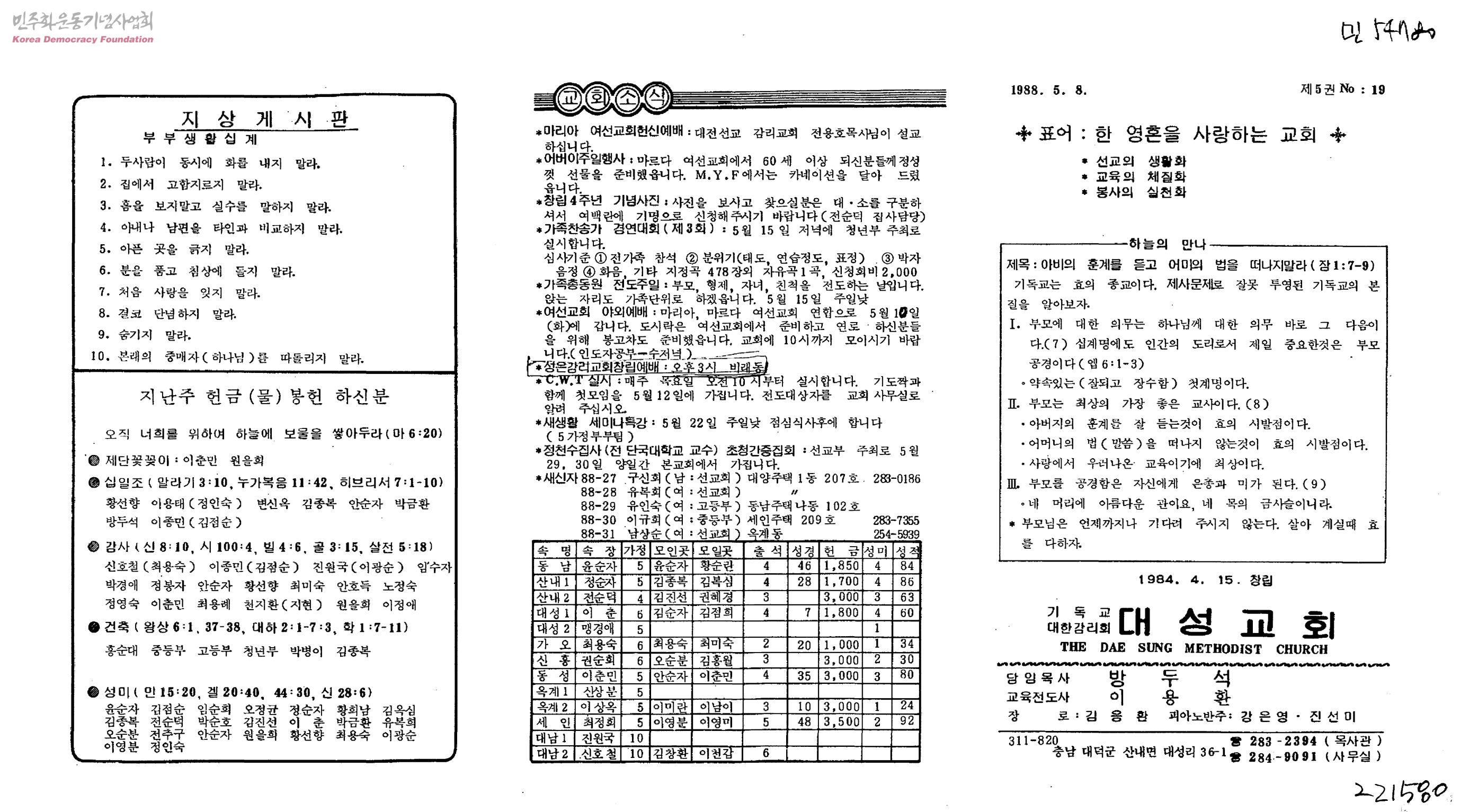 기독교대한감리회 대성교회 주보 제5권 19호