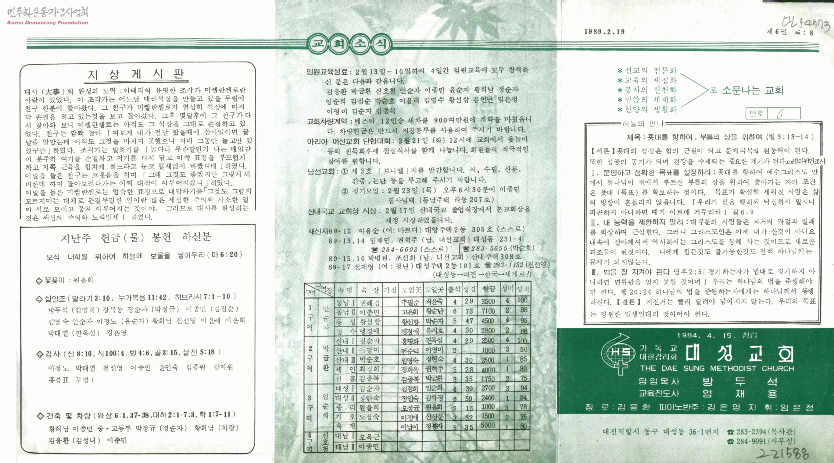 기독교대한감리회 대성교회 주보 제6권 8호