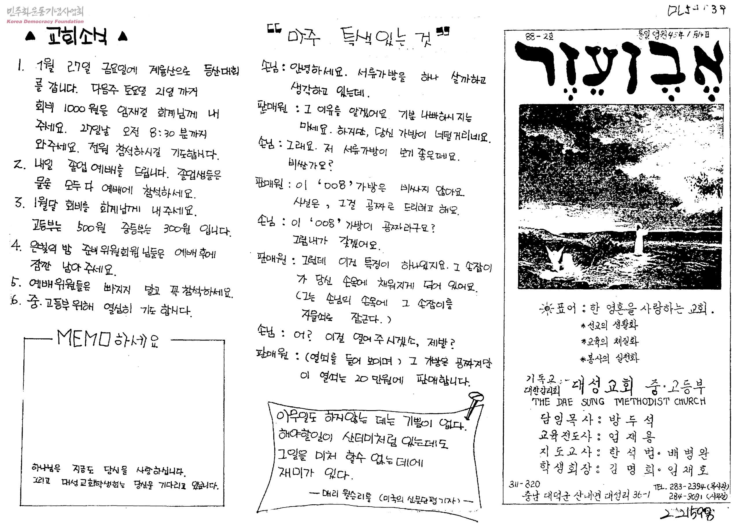 기독교대한감리회 대성교회 중고등부 주보 88-2호