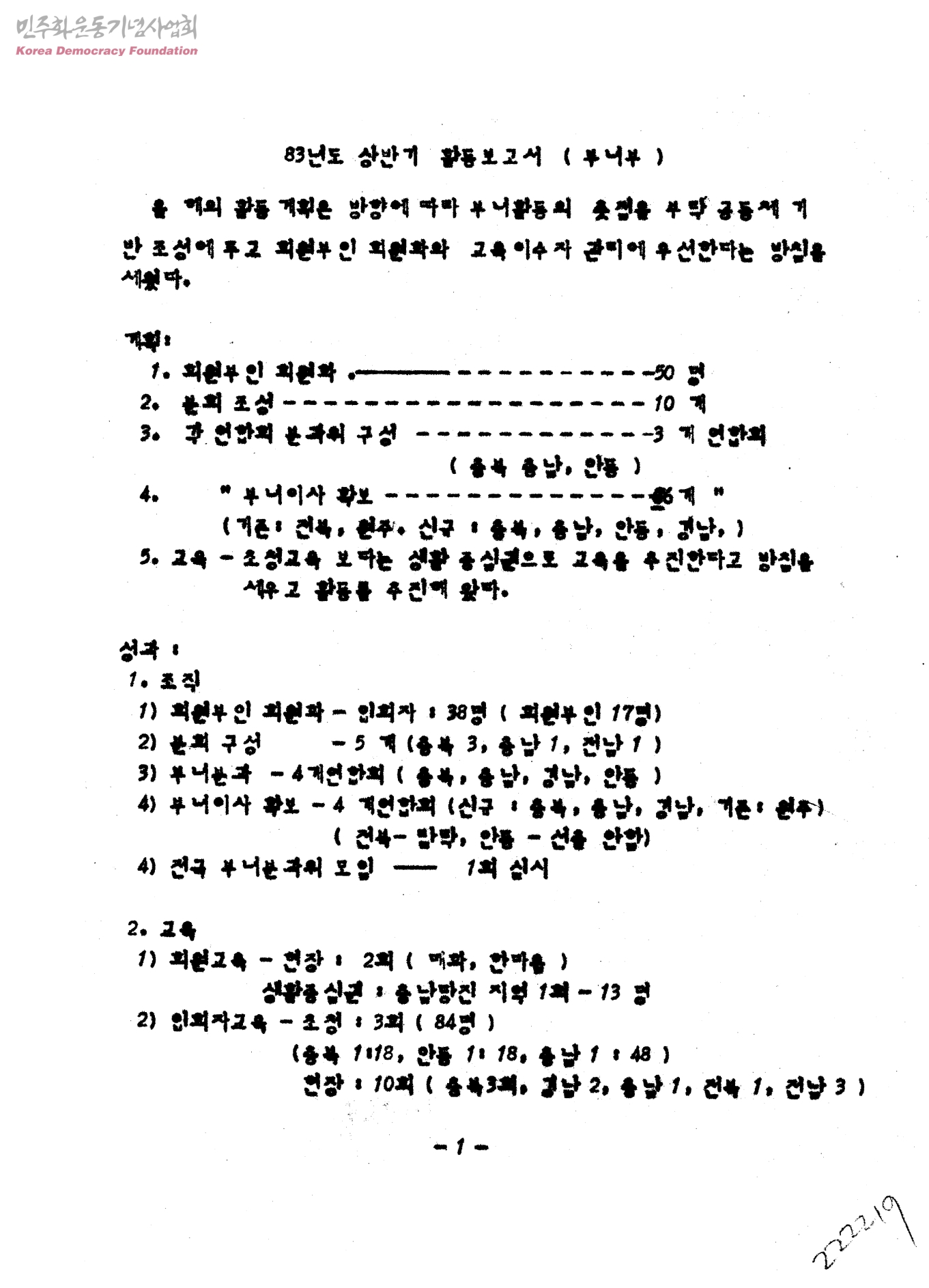 83년도 상반기 활동보고서(부녀부)
