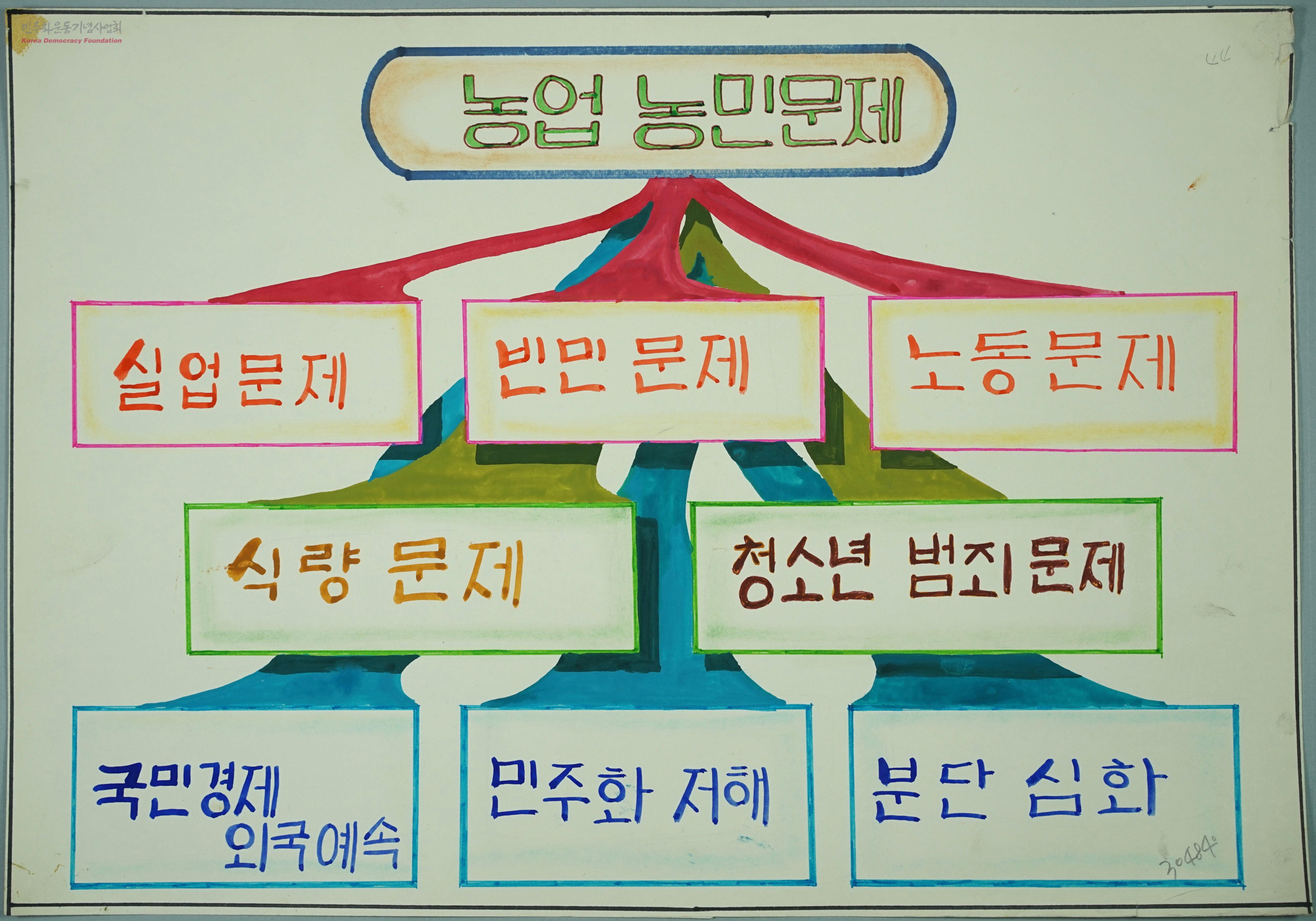 - 실업,빈민,노동,식량,청소년범죄문제와 국민경제 외국예속,민주화 저해,분단심화
