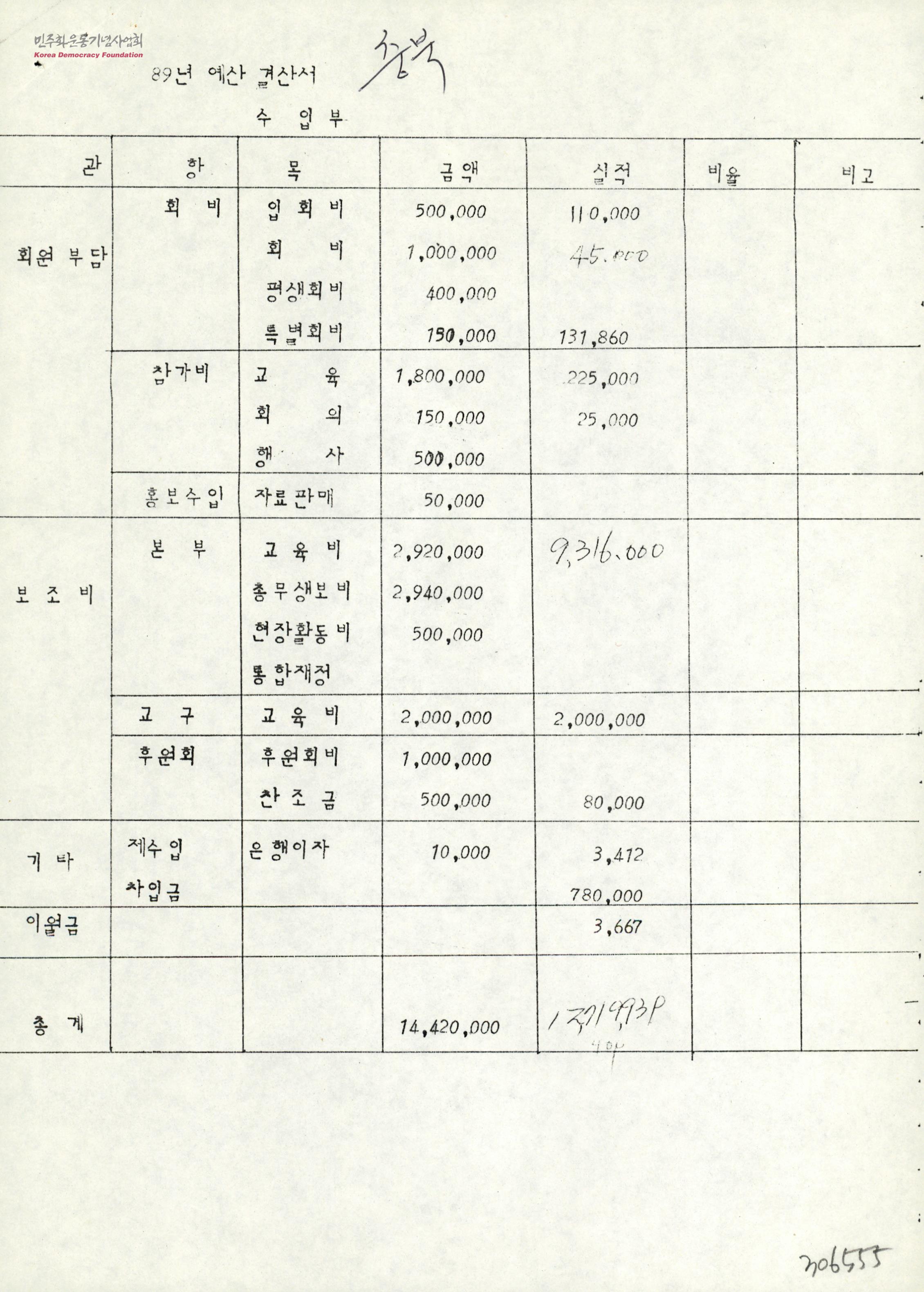 [89~90년 예산 결산서]