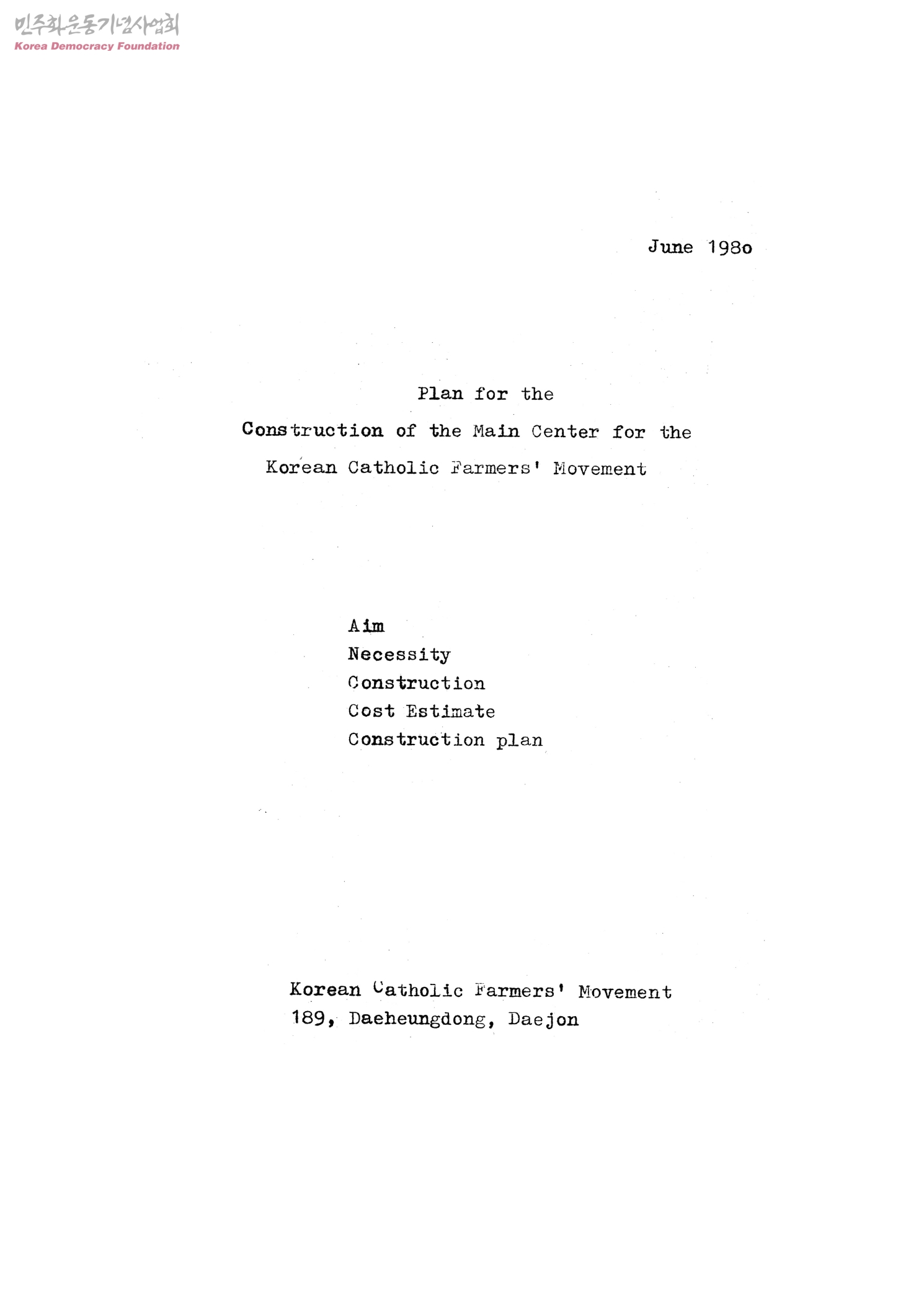 plan for the Construction of the Main Center for the Korean Catholic Farmers' Movement