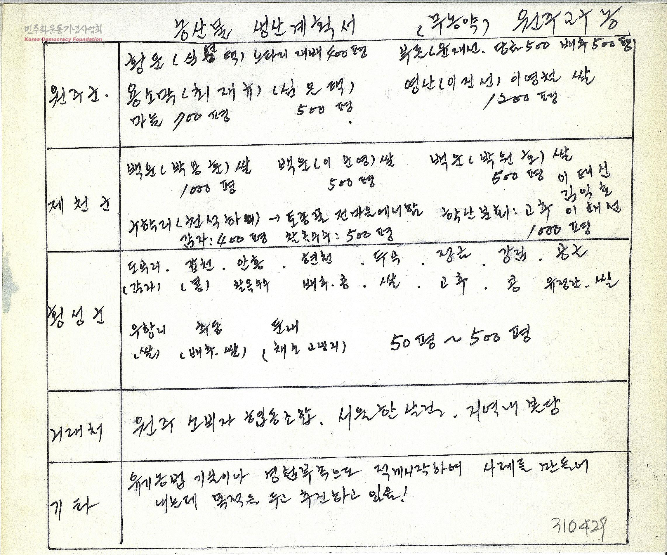 농산물 생산계획서(무농약)