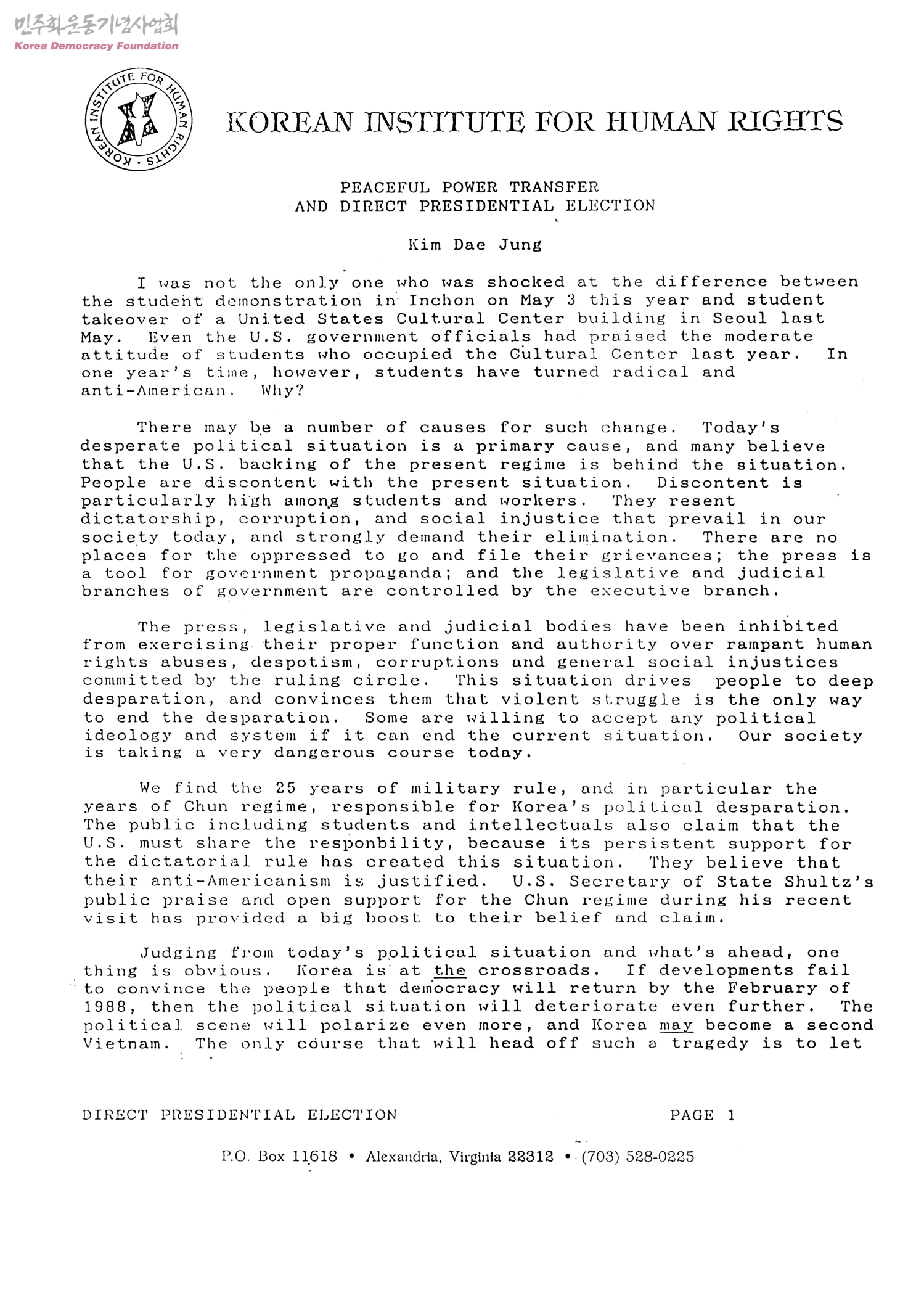 PEACEFUL POWER TRANSFER AND DIRECT PRESIDENTIAL ELECTION Kim Dae Jung