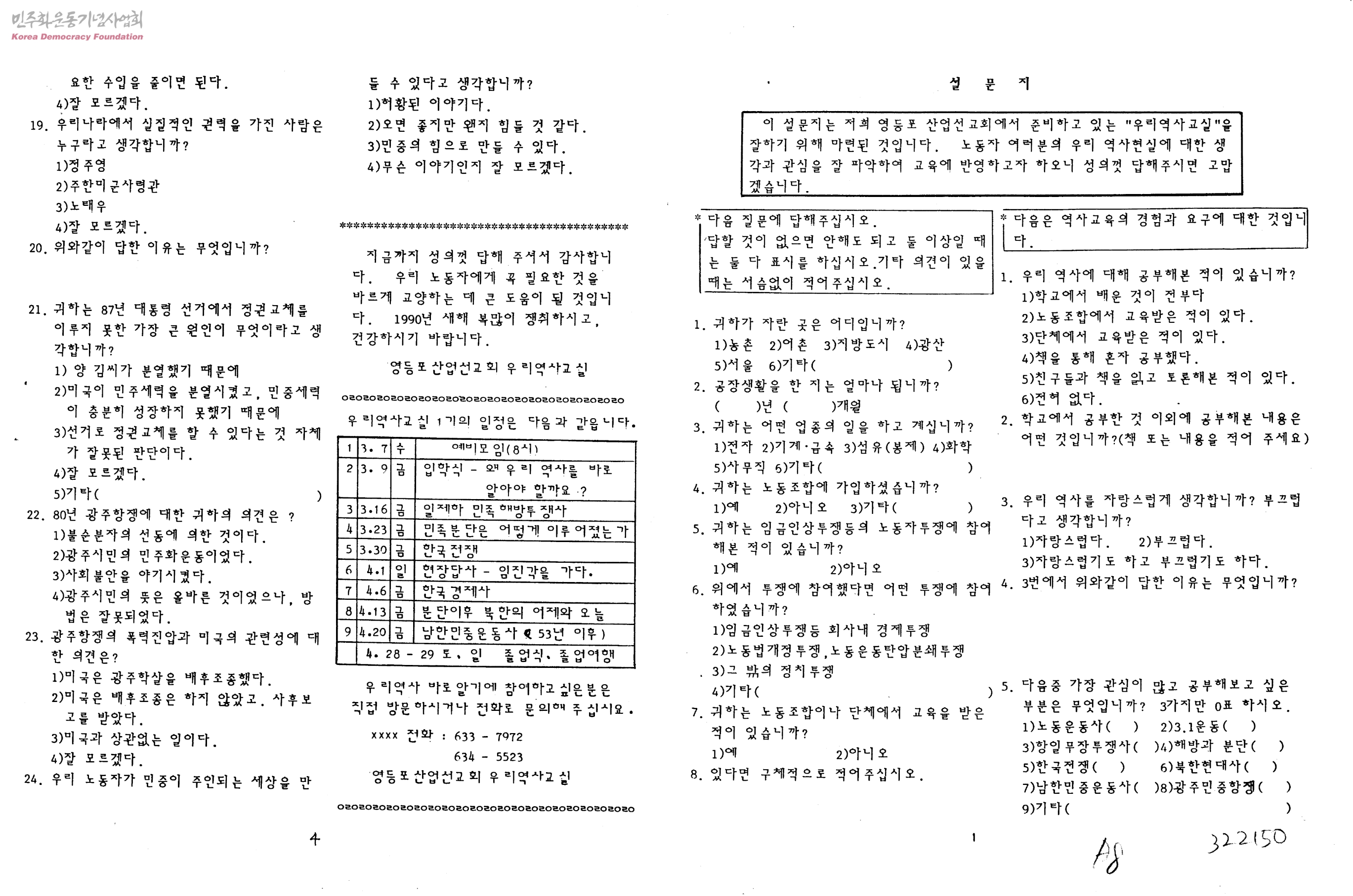 - 노동자들의 우리 역사현실에 대한 인식 설문