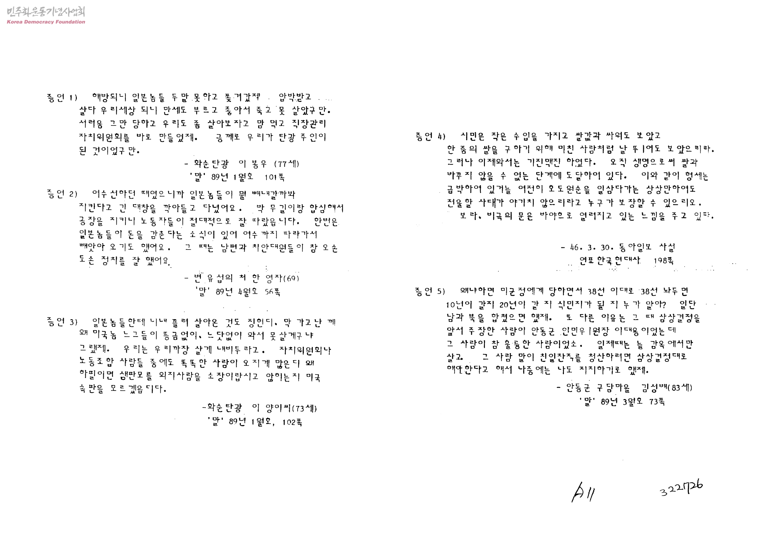 - 말지 (89년)에 실려있는 해방후 증언들 발췌