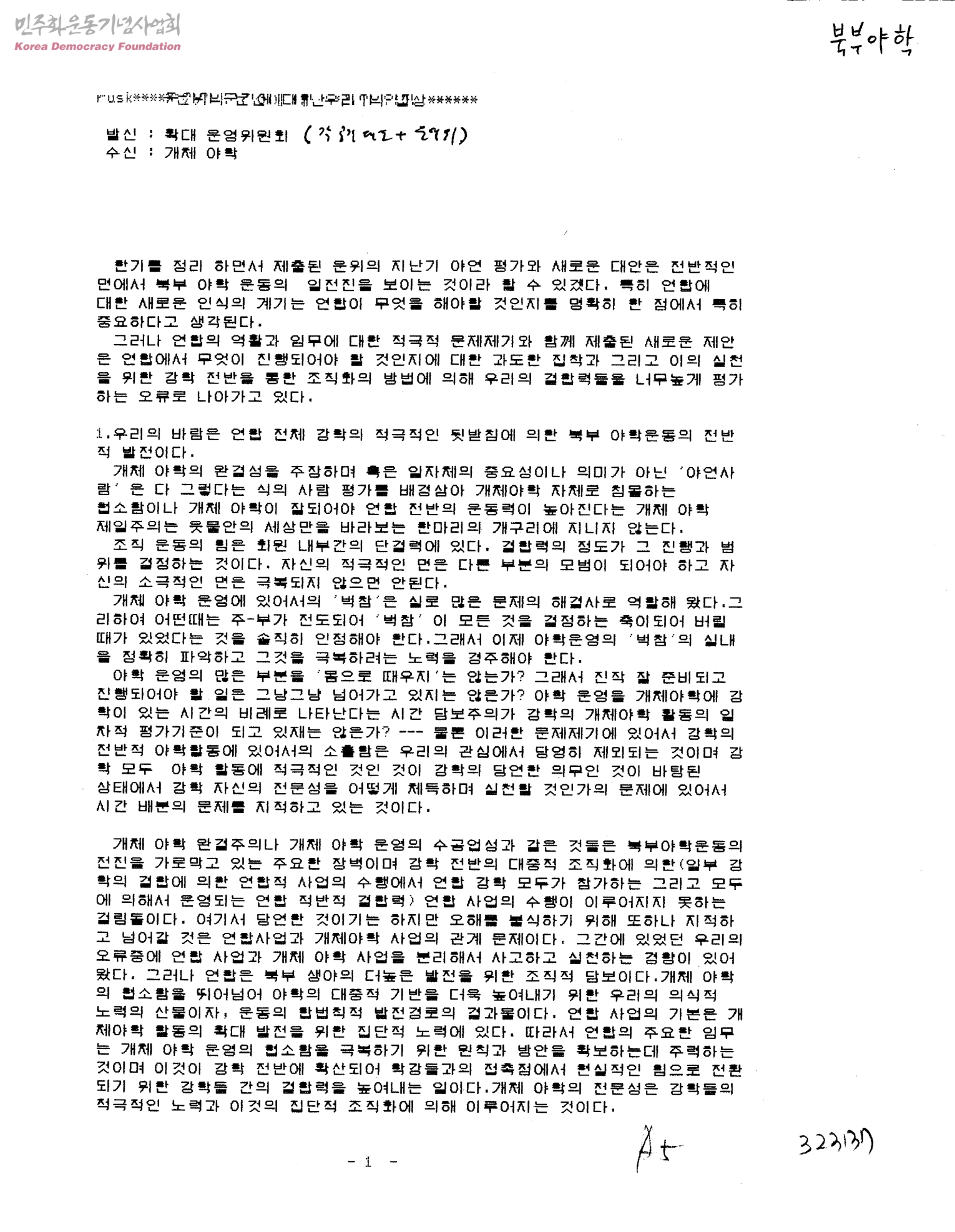 [북부야학운동의 발전방법] (수신; 개채 야학, 발신; 확대 운영위원회)