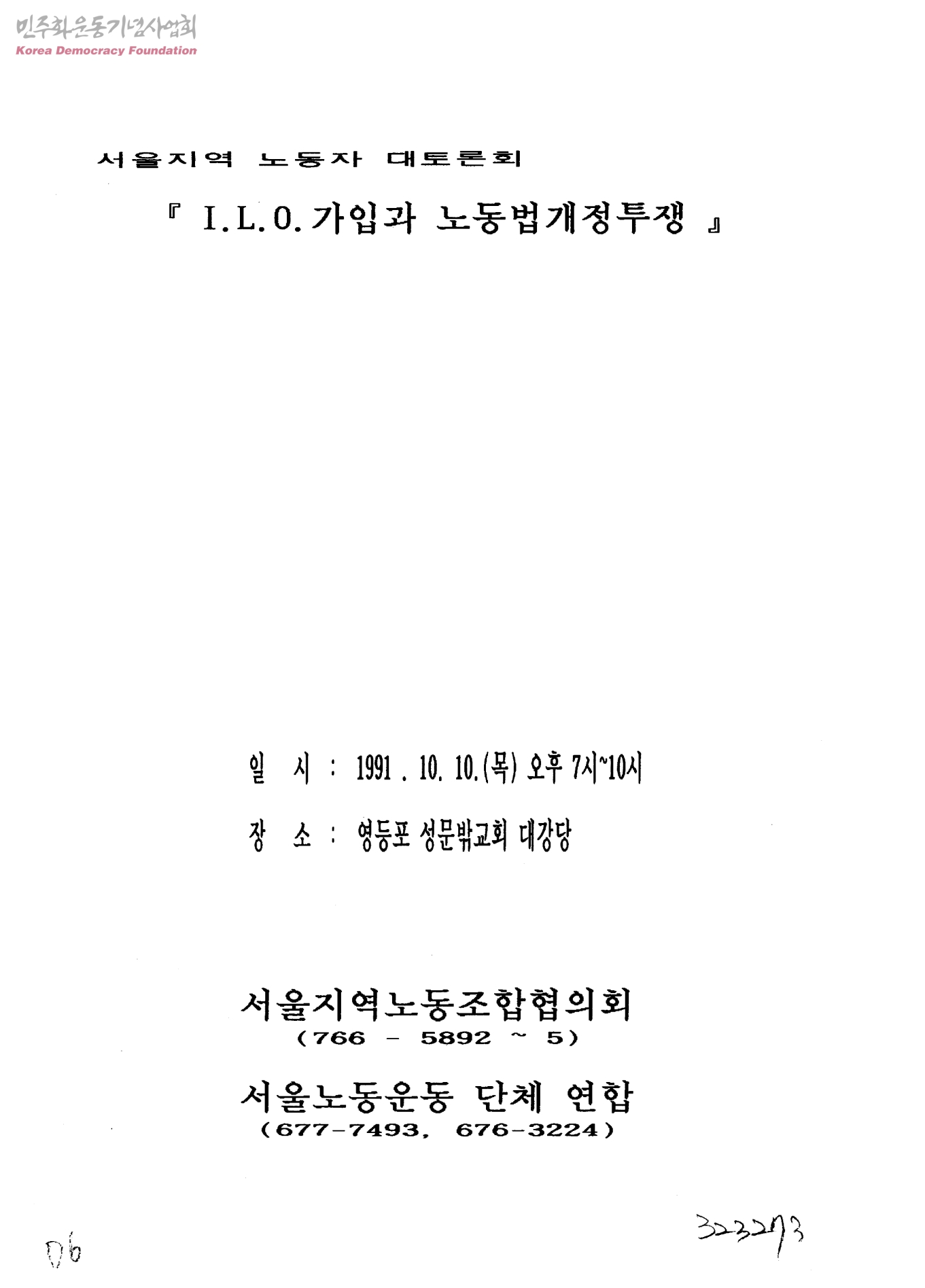 서울지역 노동자 대토론회-I.L.O. 가입과 노동법개정투쟁