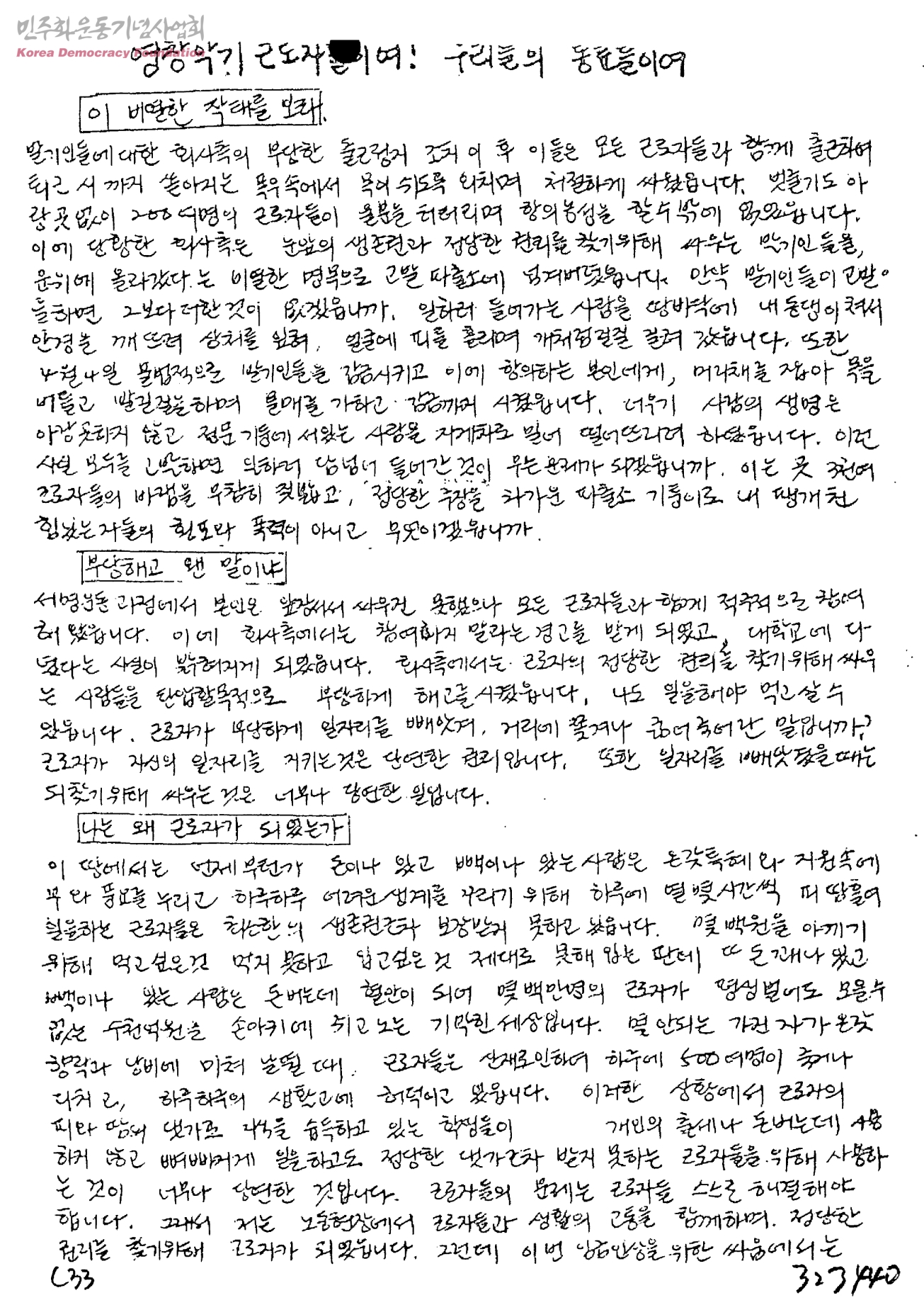- 생산자 및 기증자가 ‘경향신문사’인 사진의 사용은 경향신문사 담당자(02-3701-1635)를 통해 구매하실 수 있습니다. 그 외의 생산자 및 기증자는 민주화운동기념사업회 사료관 담당자( hyunchaek@kdemo.or.kr / 02-6440-8961 )에게 문의바랍니다.