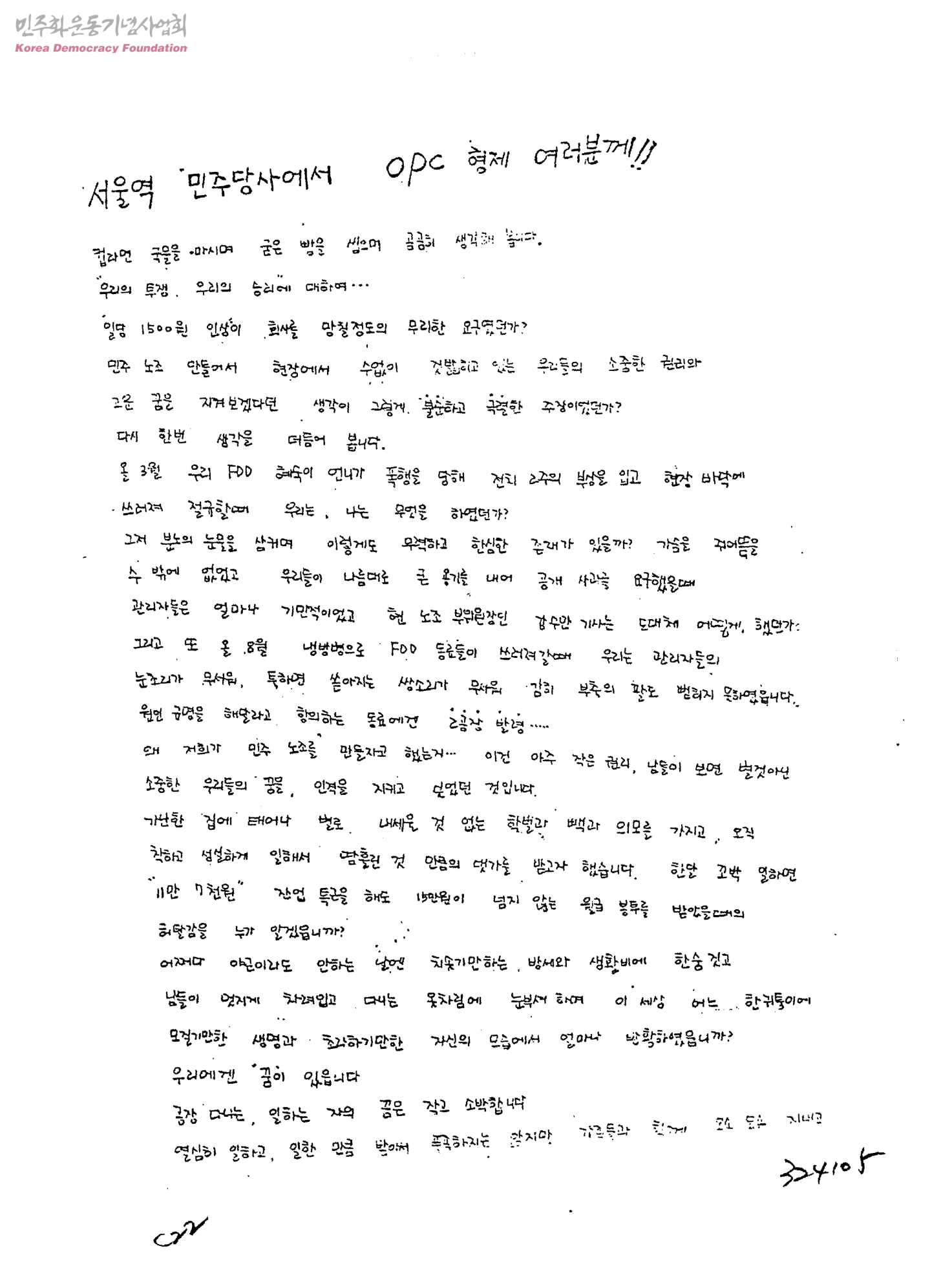 서울역 민주당사에서 OPC 형제 여러분께
