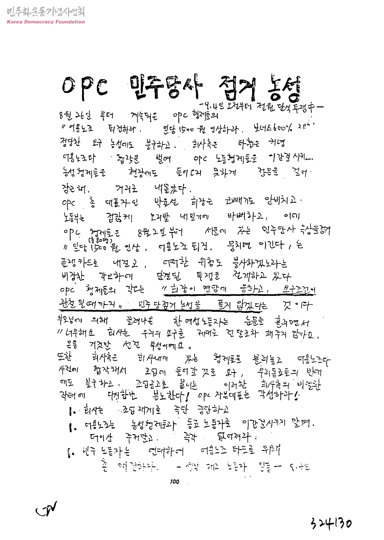 OPC 민주당사 점거 농성-9.4일 오전부터 전원 단식 투쟁 中