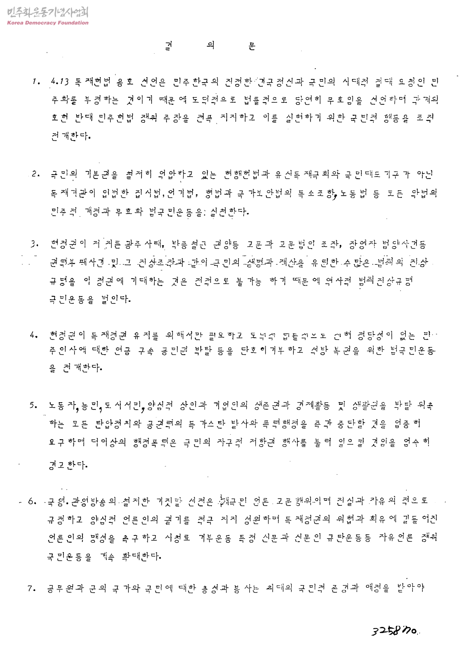 결의문[민주헌법쟁취국민운동본부 발기결의문]