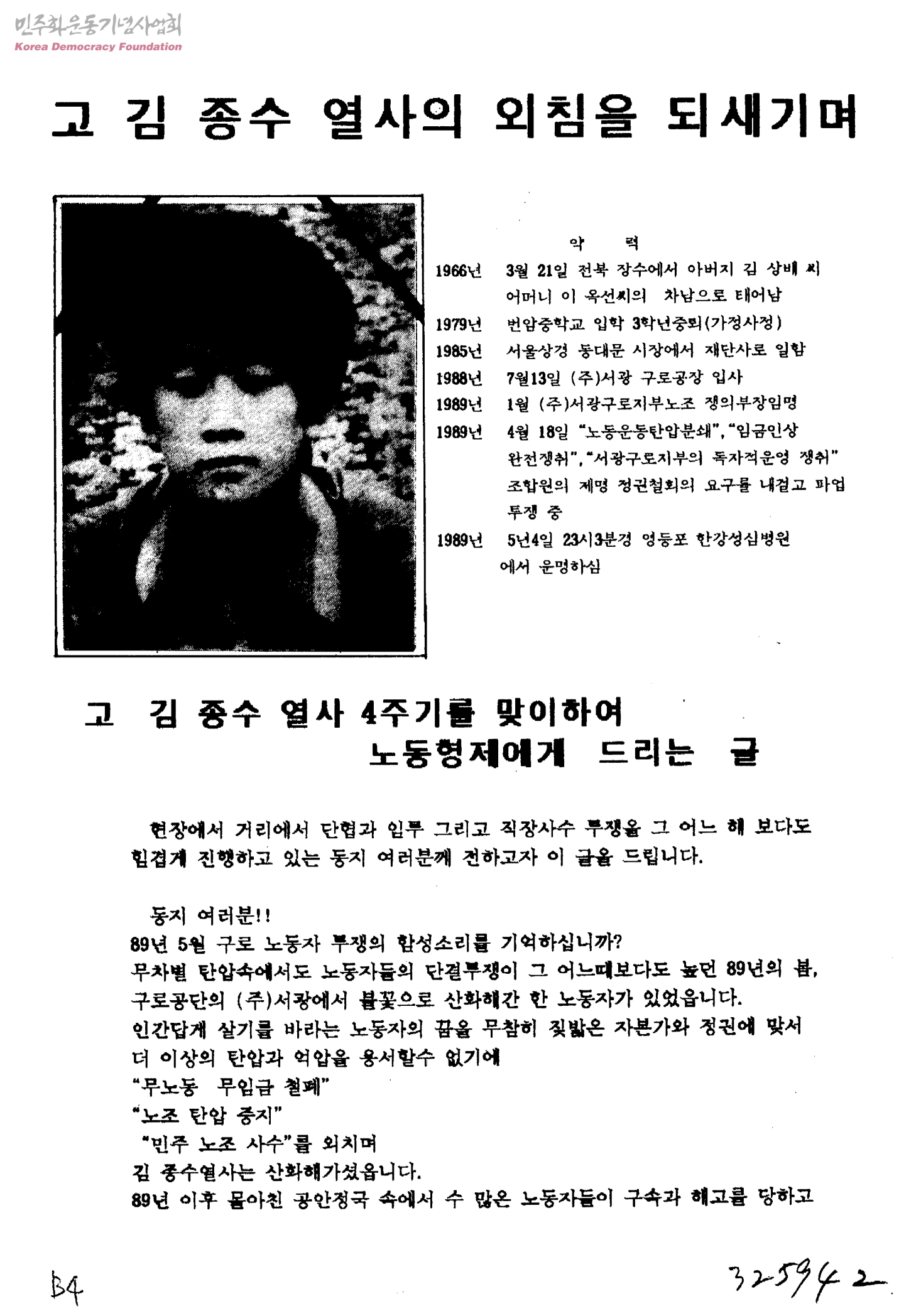 고 김종수 열사의 외침을 되새기며
