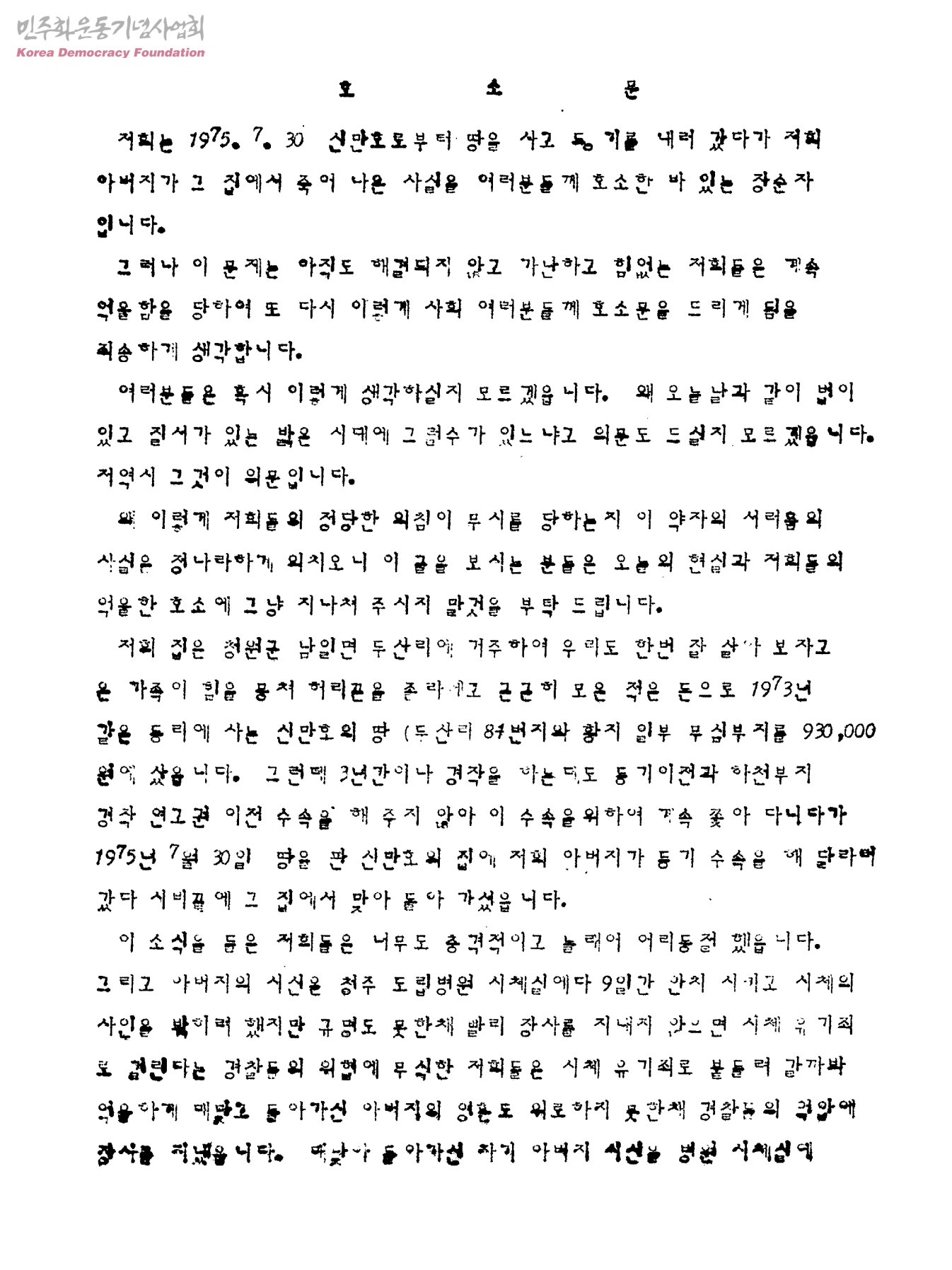 호소문[장순자씨 아버지의 억울한 죽음에관한]