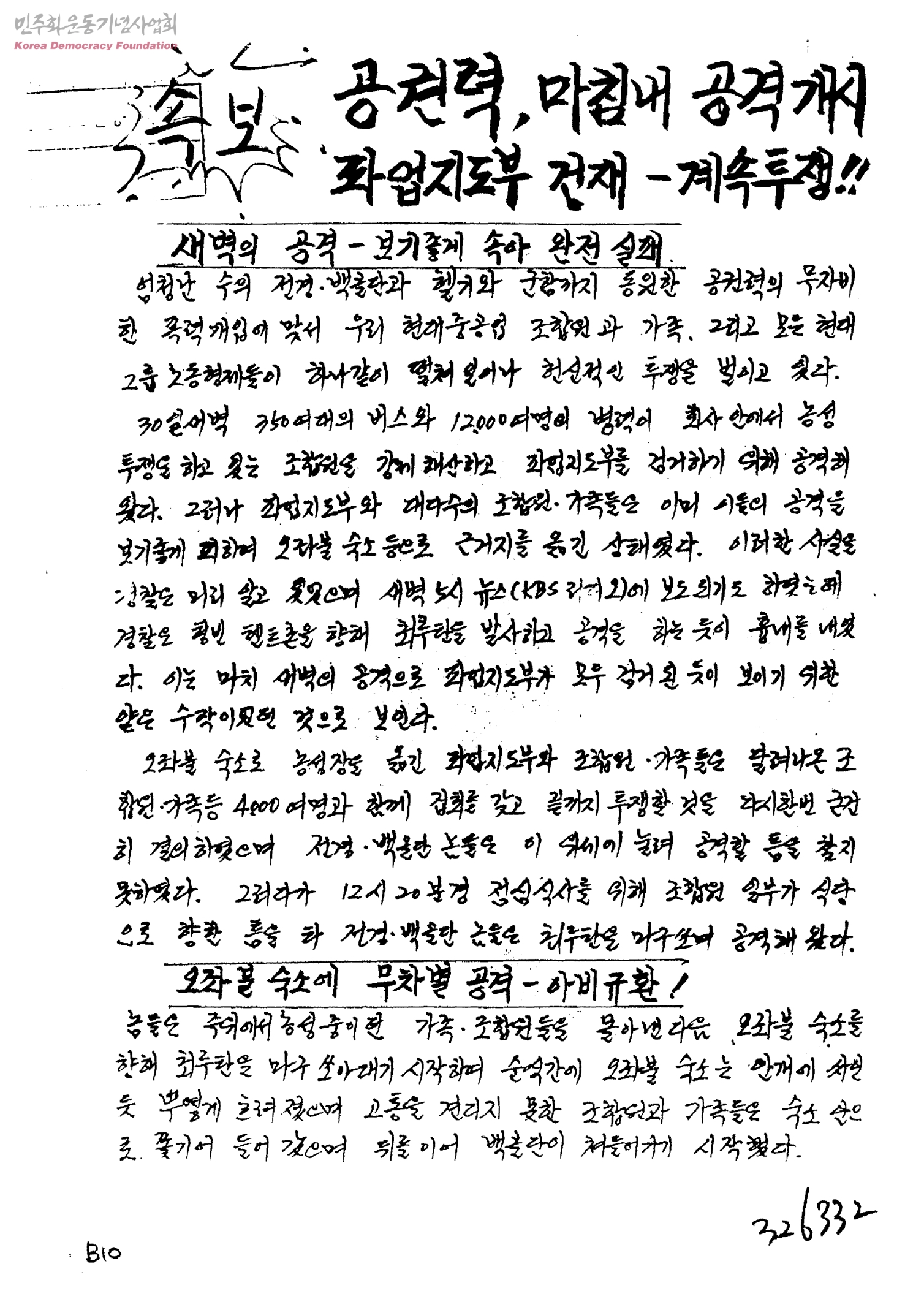 속보-공권력, 마침내 공격개시 파업지도부 건재-계속투쟁